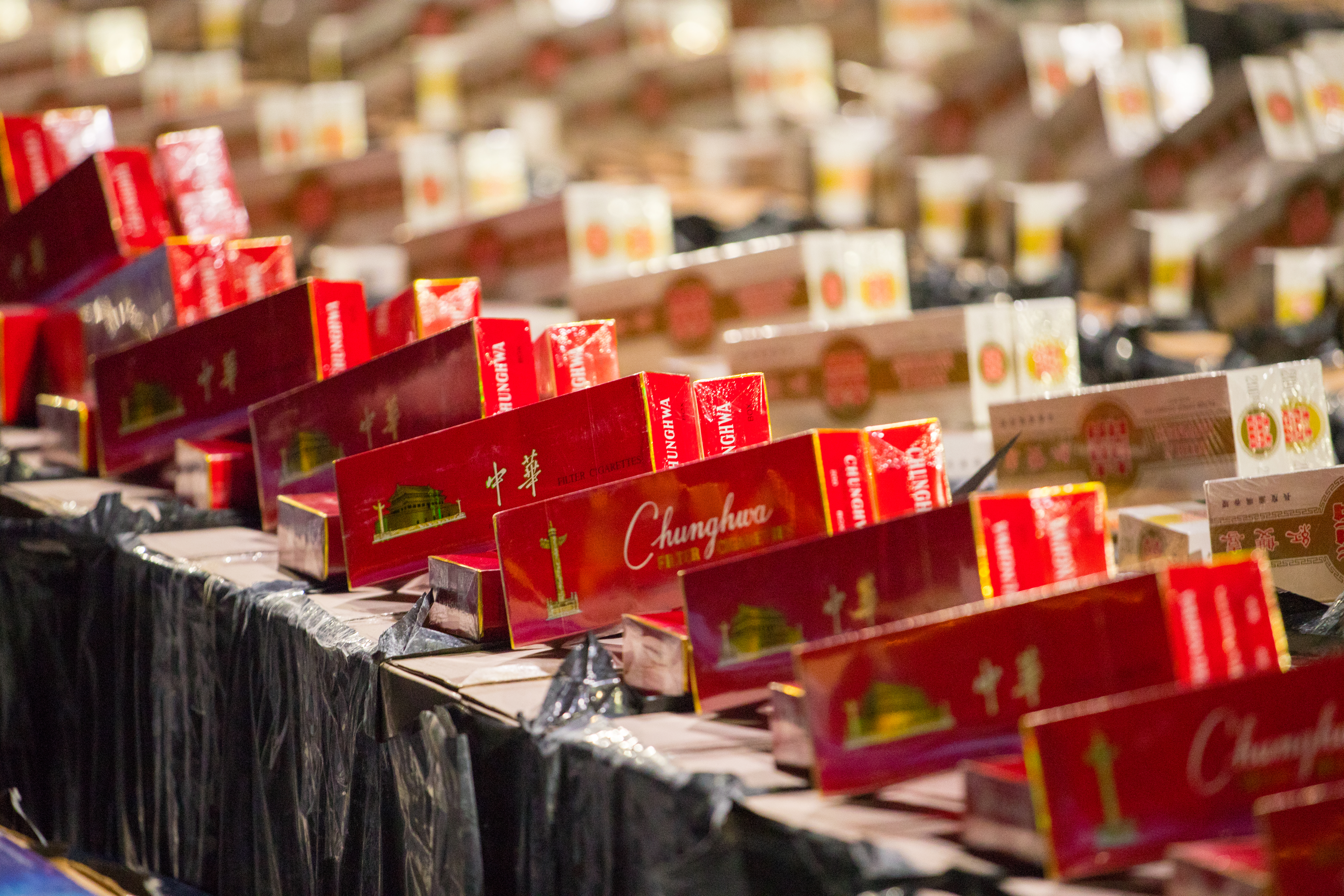 20万余条涉案香烟整齐摆放