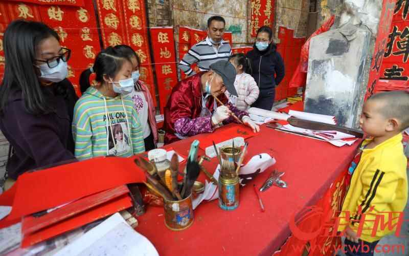 立春前,书法艺人在佛山“挥春街”为“求字者”写挥春