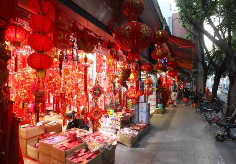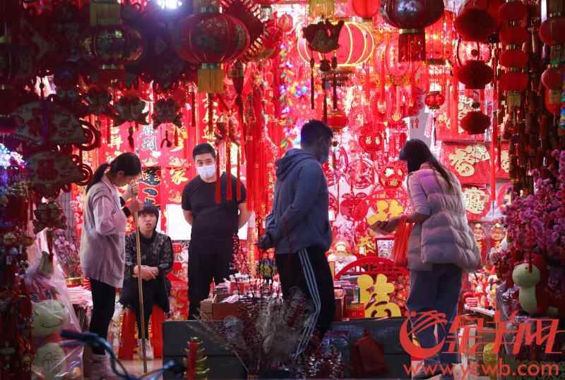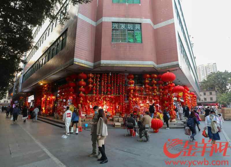 立春前的广州一德路,售卖贺年产品的商铺一片“红彤彤”