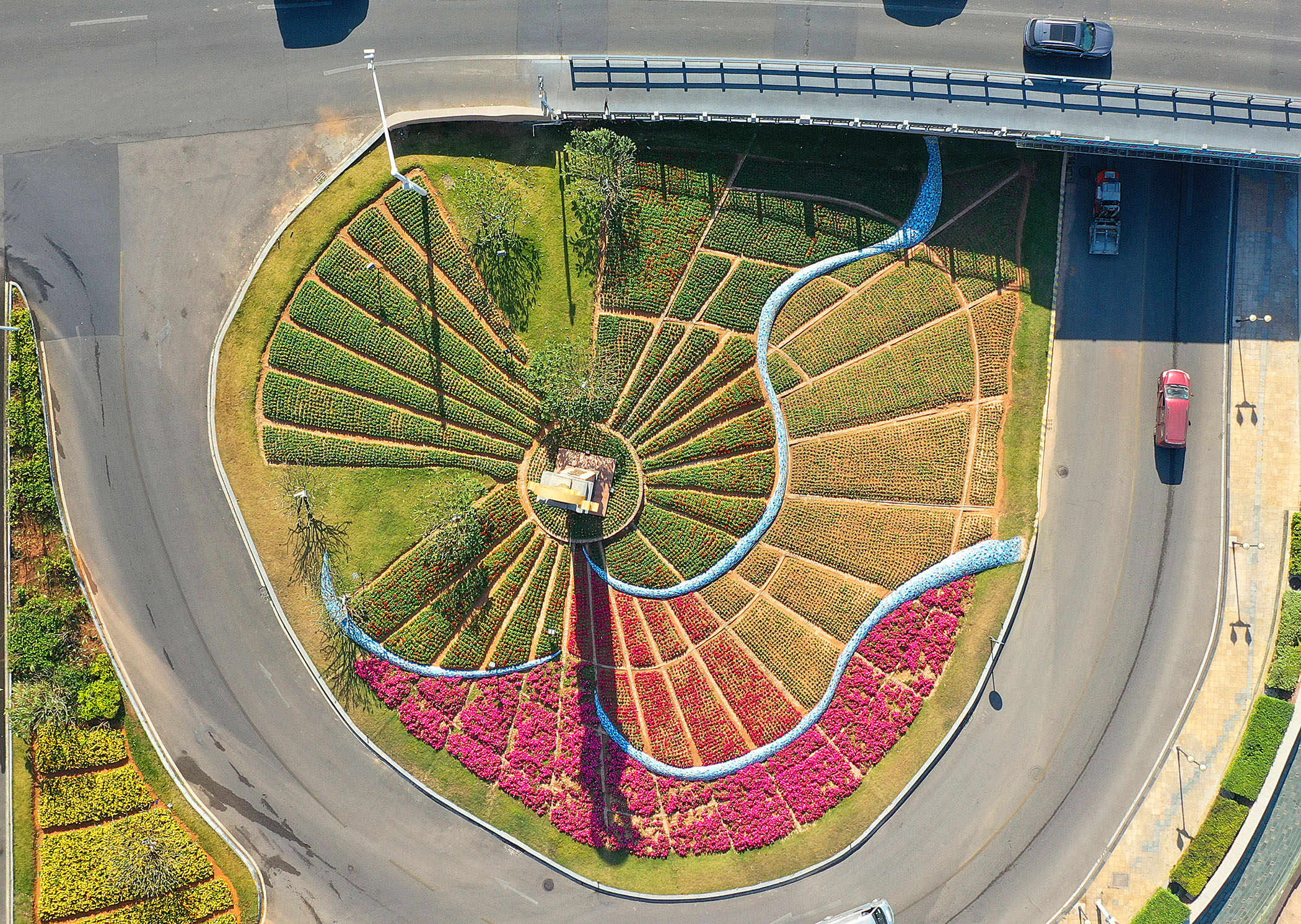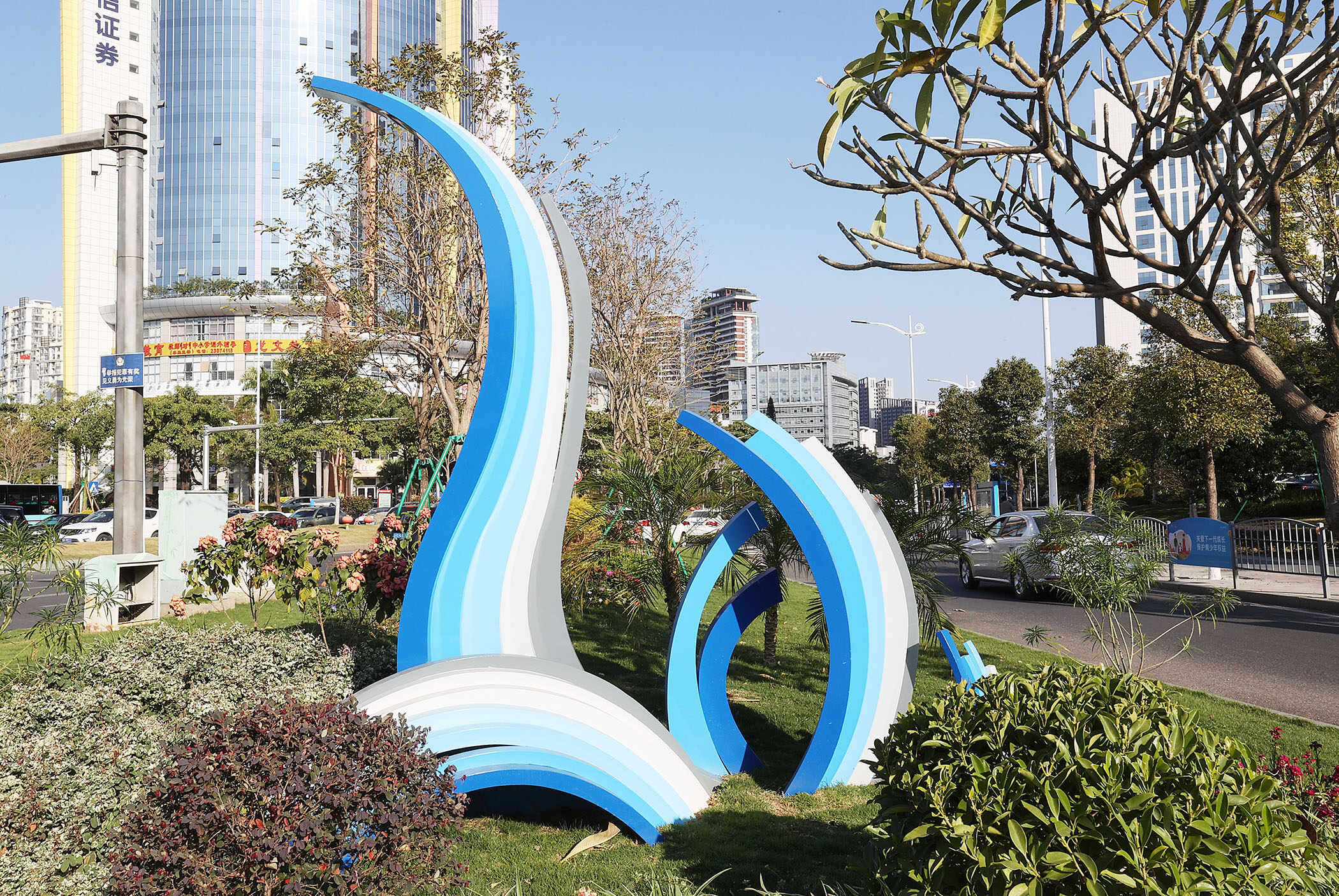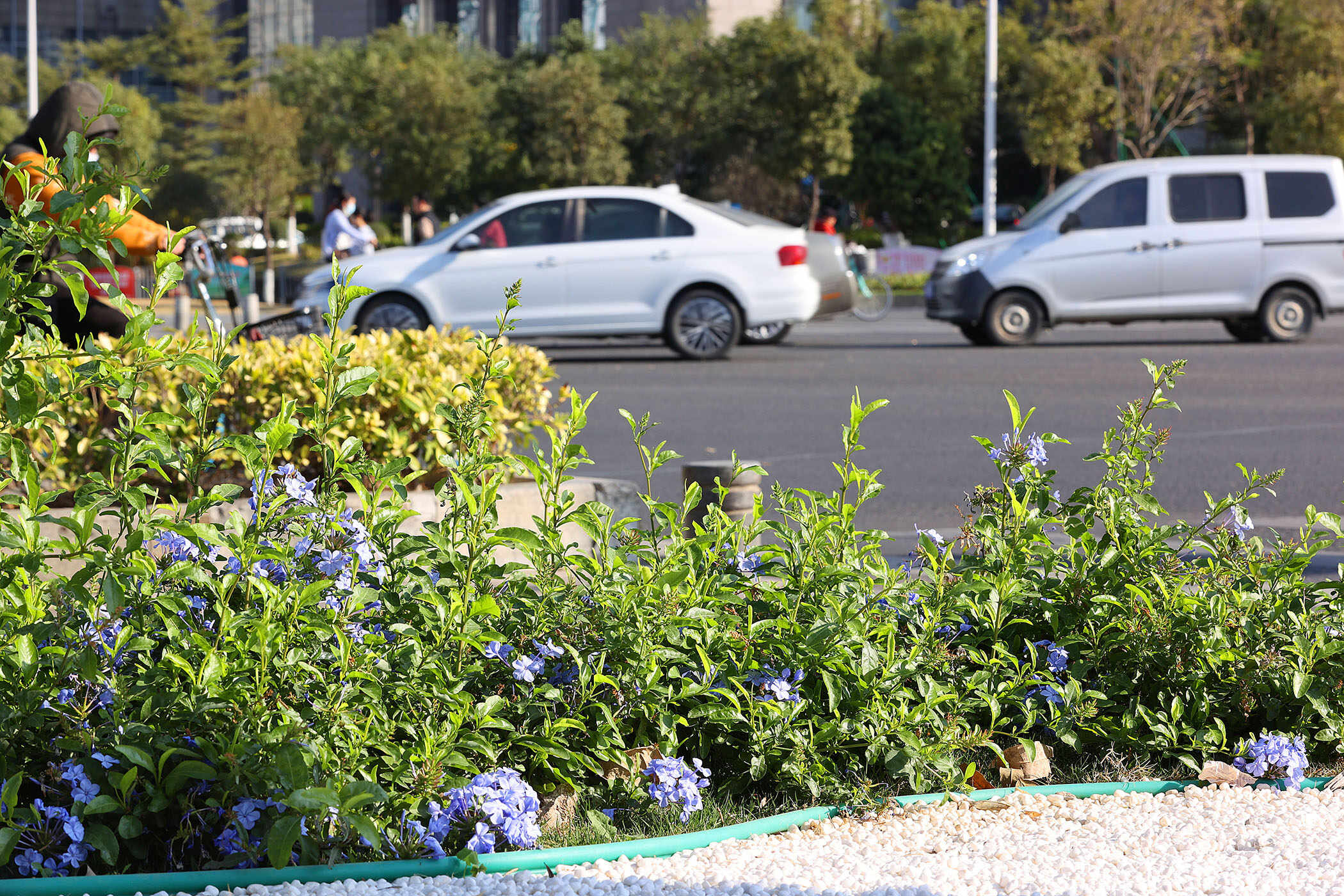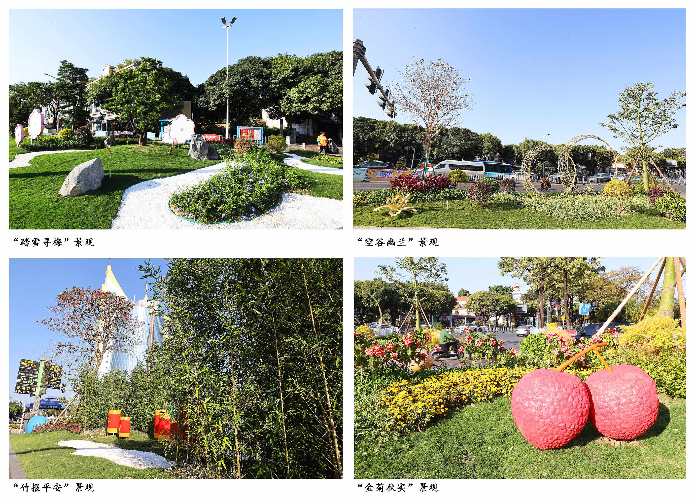 2020年12月30日9时许,跨年寒潮将至,东莞市东城路御景大厦路口交通景观岛内,小巧精致的雕塑掩映于梅、兰、竹、菊等花木丛中,寄寓着“金菊秋实”“竹报平安”“踏雪寻梅”“空谷幽兰”等祥瑞兆头。路上是川流不息的人流、车流,人们泊车驻足其间,也能感受到片刻的舒适和美好。对此,作为东城人的一员,张博颇为感同身受。