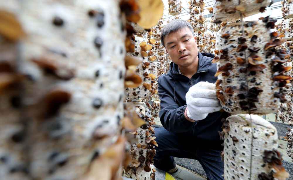 ↑陕西柞水县小岭镇金米村村民肖青松在采摘木耳。位于秦岭深处的金米村,这几年在当地和对口企业帮扶下,建起了智能木耳大棚、木耳培训中心等项目,还引进龙头企业建起年产2000万袋的菌包厂,将木耳作为脱贫主导产业。2020年前三季度,金米村电商平台网上销售木耳总值达2300万元。截至2019年底,金米村累计脱贫187户549人,贫困发生率降至0.23%(2020年4月22日摄)。