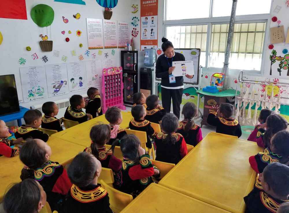 ↑四川昭觉县火普村幼教点老师在给孩子们上课。近几年,教育扶贫让越来越多的火普村村民认识到,只有读书才能斩断穷根,改变命运。以前村民们一见面,比的是谁家子女多,现在比的则是谁家子女学得好。目前,全村137名适龄儿童全部入校读书。村里还建成两个幼教点,确保幼儿学前学会普通话(2019年3月11日摄)。