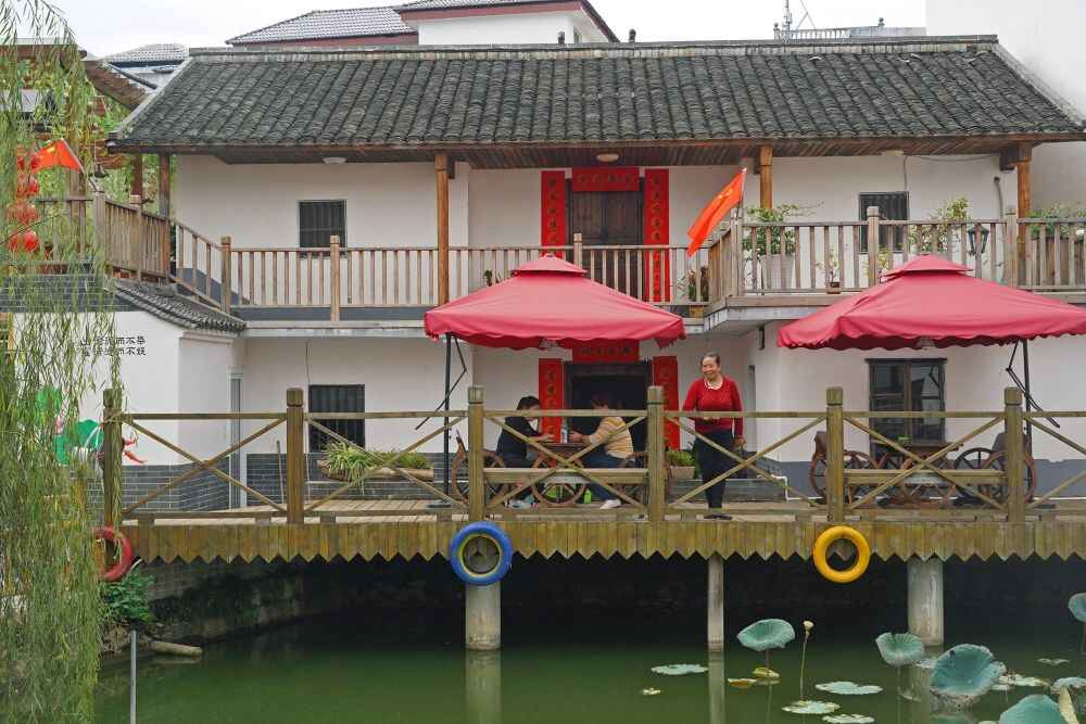 ↑游客在江西省赣州市于都县梓山镇潭头村的一处民宿前休憩。潭头村是赣南老区的一个红军村,也曾是贫困村,原有贫困户109户。随着脱贫攻坚的开展,这里旧貌换新颜。2019年,村里成立旅游开发有限公司,全村6个村民小组、162户村民入股,一同发展农家乐、民宿、研学旅游项目,小小村庄一年迎来研学和旅游者35万人次(2020年10月21日摄)。