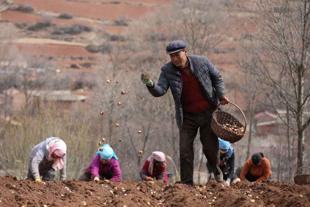 ↑甘肃定西市渭源县元古堆村村民在播撒百合种子。2014年,元古堆村将百合、马铃薯种薯和中药材确定为扩大种植的重点品种。在小额信贷、农业保险等政策支持下,几年下来,种植面积由2012年的1000亩扩大到了4500亩。村里还组织农户成立了合作社,统一技术指导、农资供应、产销对接,提升产品附加值和产业组织化程度,助力村民增收致富(2020年3月11日摄)。
