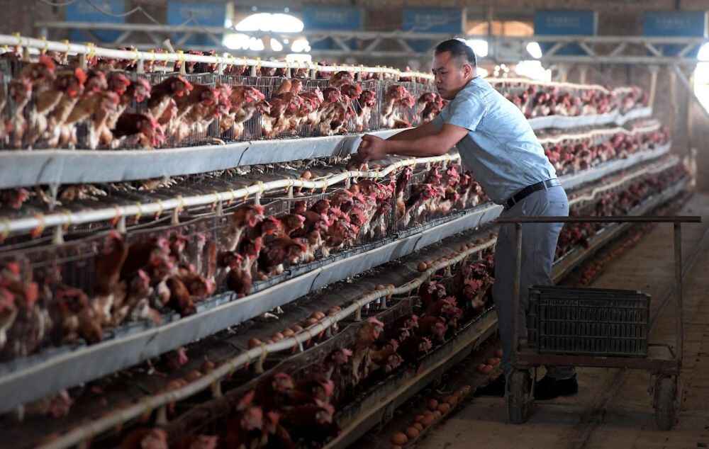 ↑河南兰考县张庄村村民在自家养鸡场内收鸡蛋。随着农业规模化经营的开展和引进企业的入驻,村里用工机会和岗位逐渐增多, “农民就地变工人,就业增收不离村”,不少外出务工的张庄人也主动返乡投身创业。2017年兰考县实现整体脱贫(2019年9月摄)。