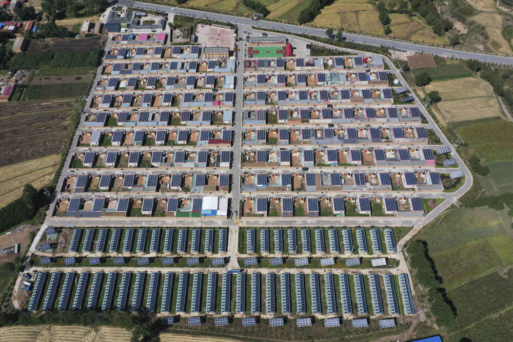 ↑2004年,为了响应国家号召、保护日益脆弱的三江源生态,青海海西蒙古族藏族自治州唐古拉山镇的128户牧民翻越昆仑山,搬迁到420多公里以外的格尔木,在市区边上新建长江源村。从雪山脚下到城市郊区,牧民们学习技能融入新生活,饮食结构和卫生习惯也有了新变化。村里的年轻人学文化、开公司,用双手改变自己的命运。2017年,长江源村正式脱贫摘帽。2019年,人均可支配收入达到2.7万元,比2004年搬迁时增长10多倍,是2015年的1.4倍。图为长江源村村貌(2020年5月13日摄)。