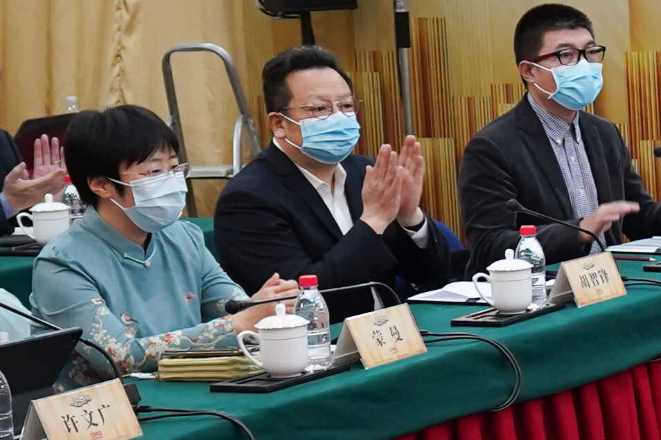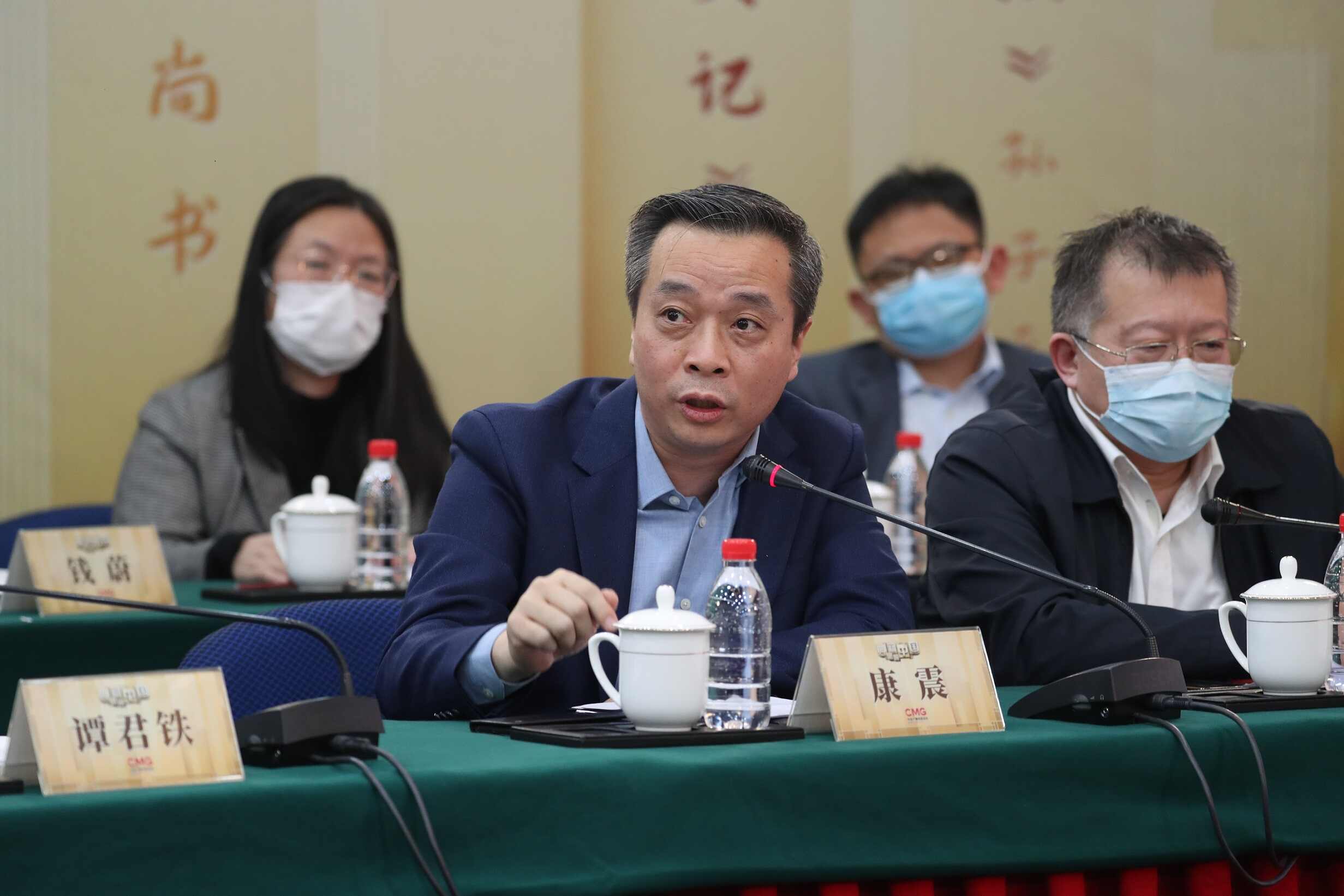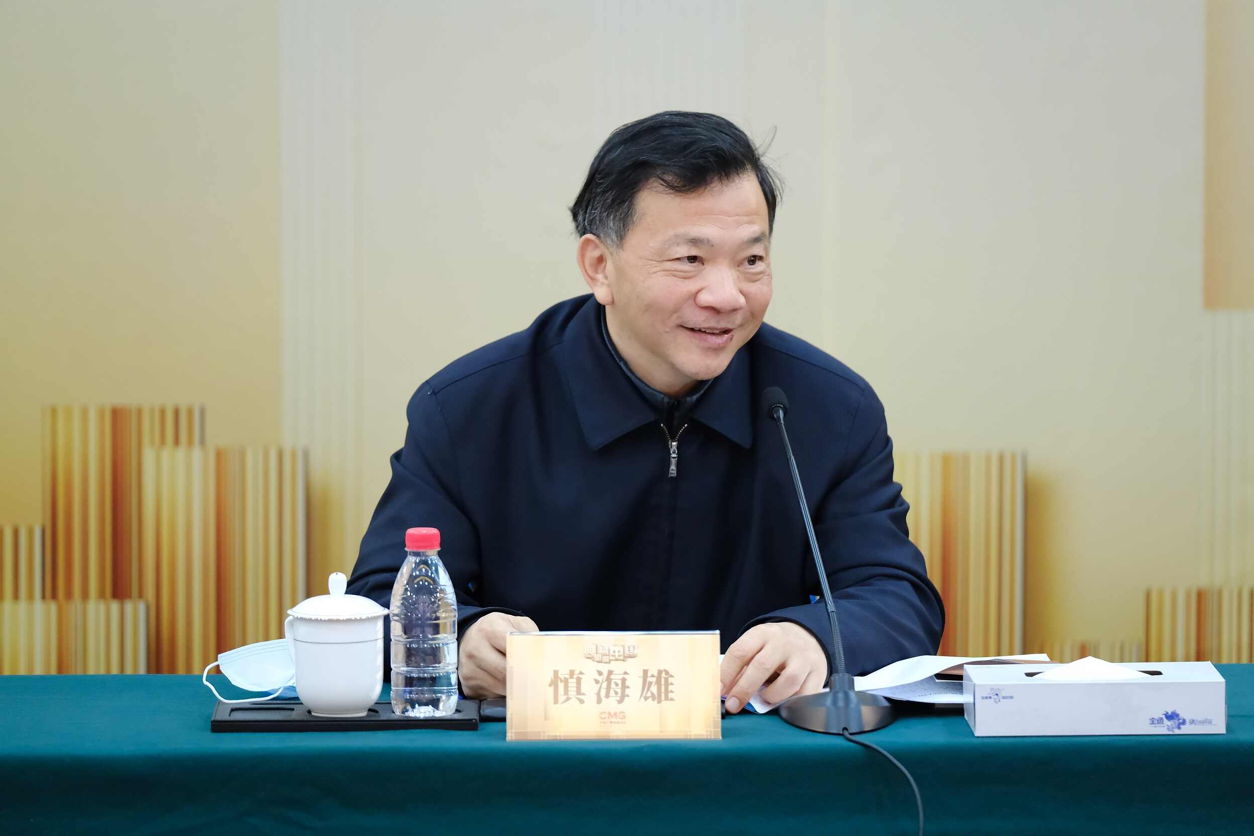 △中宣部副部长、中央广播电视总台台长兼总编辑慎海雄主持座谈会并讲话