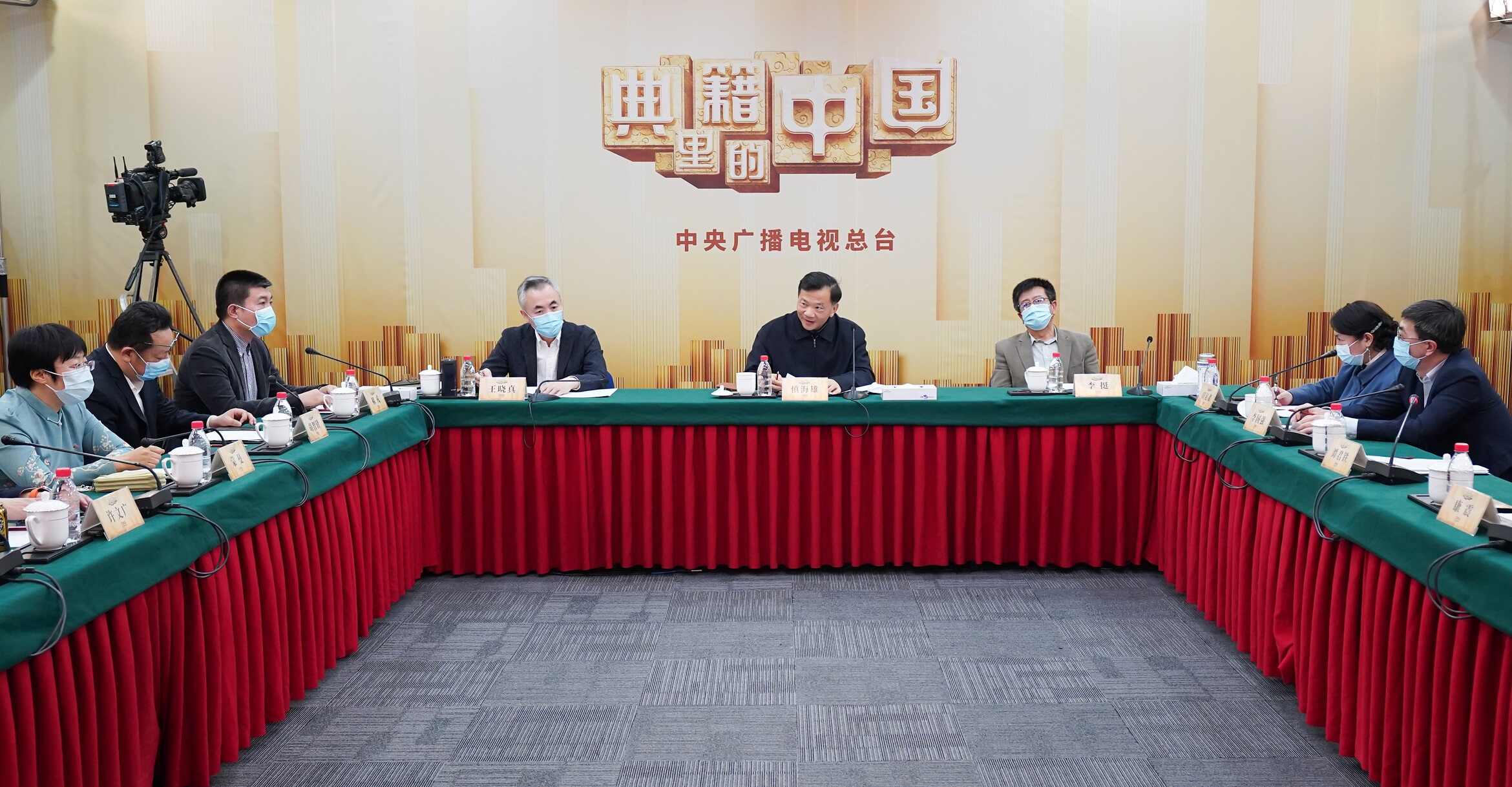 让中华优秀典籍“点”亮前行之路。2月24日,大型文化创新节目《典籍里的中国》创作座谈会在北京举行。中宣部副部长、中央广播电视总台台长兼总编辑慎海雄主持座谈会并讲话。总台编务会议成员李挺、学术单位与合作单位的专家学者、总台有关部门负责人,以及《典籍里的中国》主创团队代表参加了座谈会。