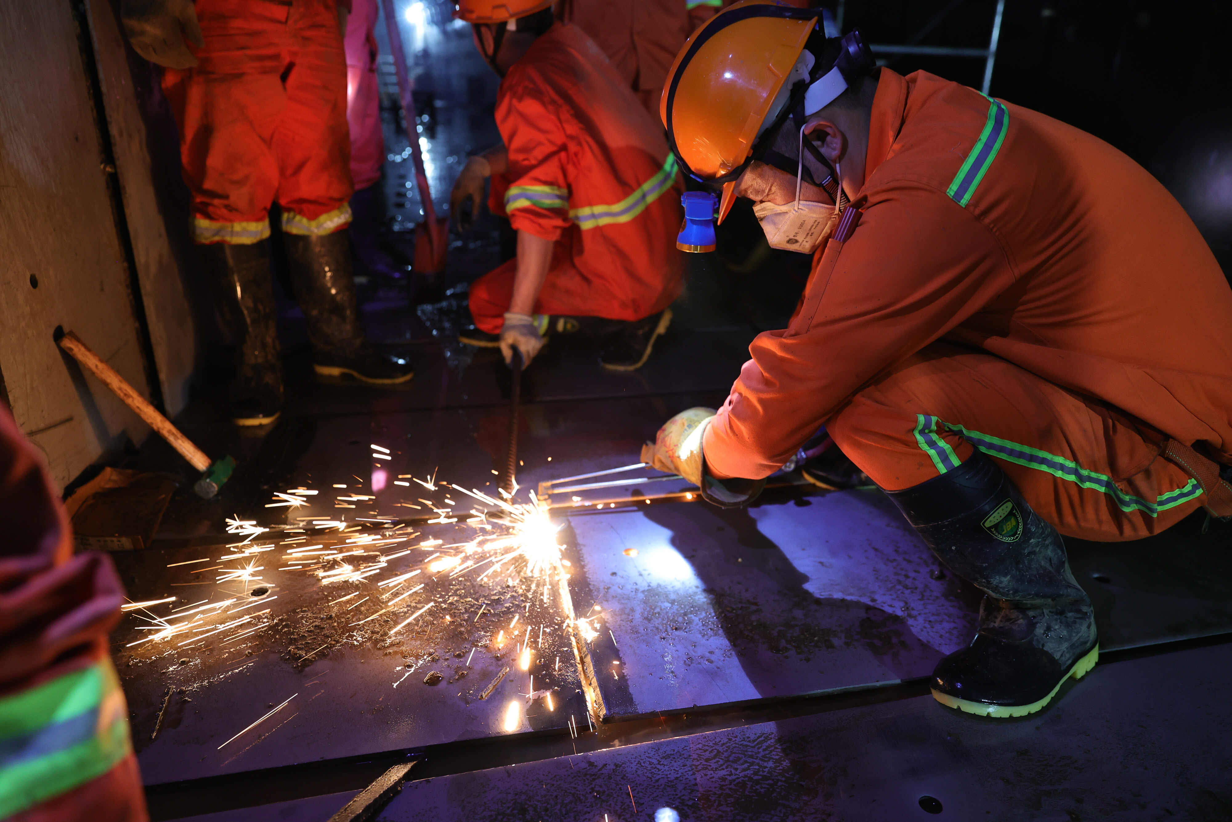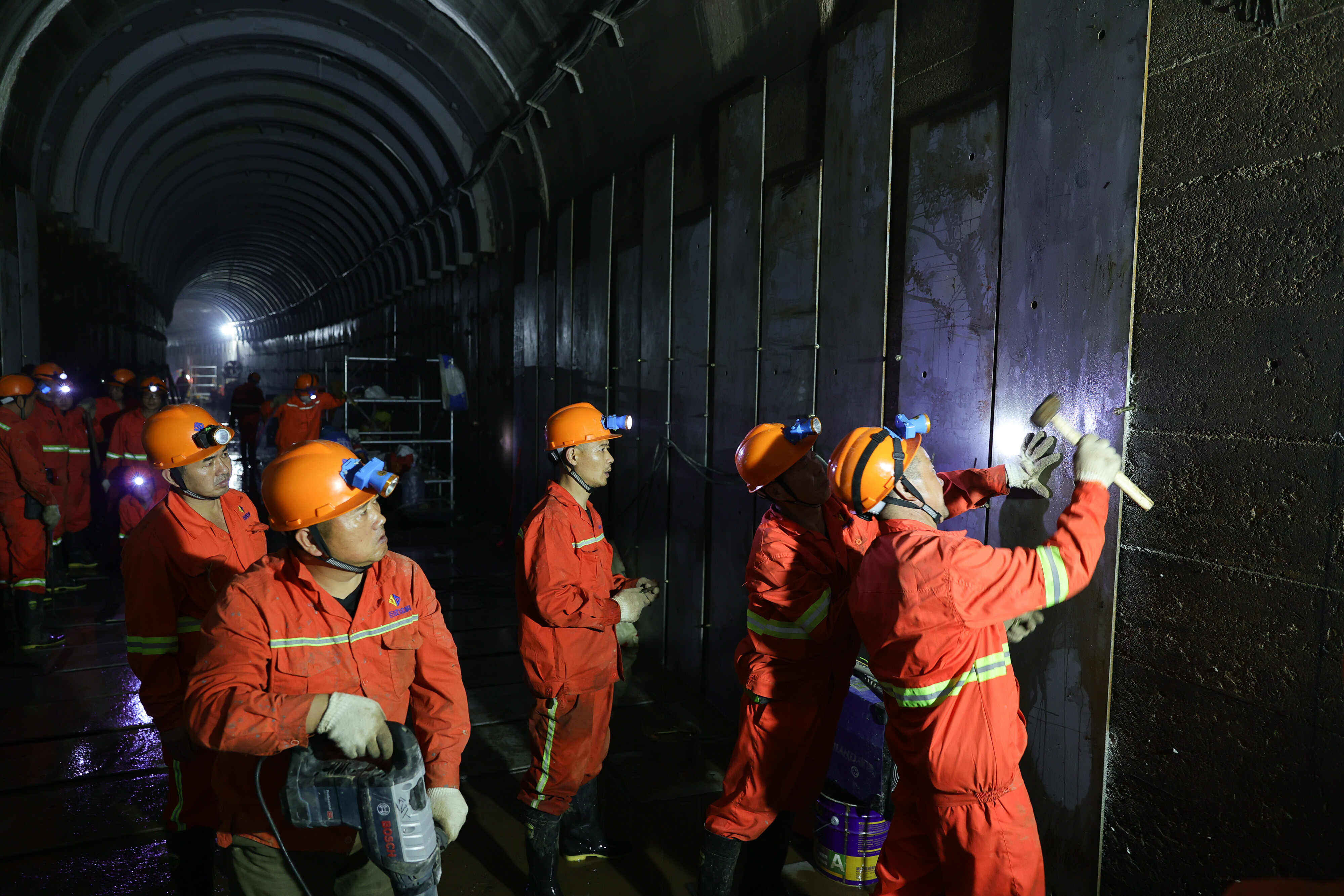 在永湖所辖区,记者攀爬下到离地面五米深的箱涵,地面水已经排干,此处箱涵部分伸缩缝有渗漏现象,工人们正在清洗准备填缝。箱涵壁上还有很多的泥螺花蛤类生物,工程人员介绍,这就是清淤、洗壁(清蛤)。