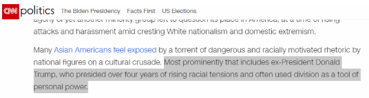 ▲CNN认为特朗普政府加剧了对美国社会亚裔的仇恨
