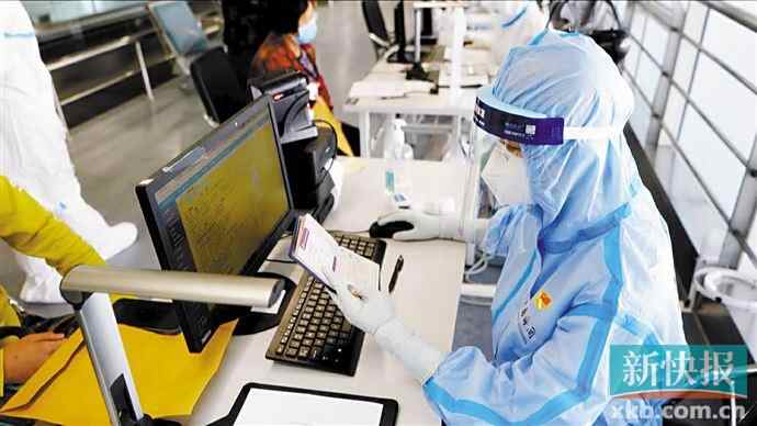“你最近有没有咳嗽,发烧?有没有接种新冠肺炎疫苗?……”5月1日下午2时许,屈碧瑶和她的同事们正对一架自阿联酋飞抵广州白云机场的航班进行监管。健康申明卡审核、流行病学调查、样本采集……屈碧瑶耐心地询问着旅客,把流行病学调查的内容同步录入疫情防控信息化管理系统,一切都在有条不紊地进行着。