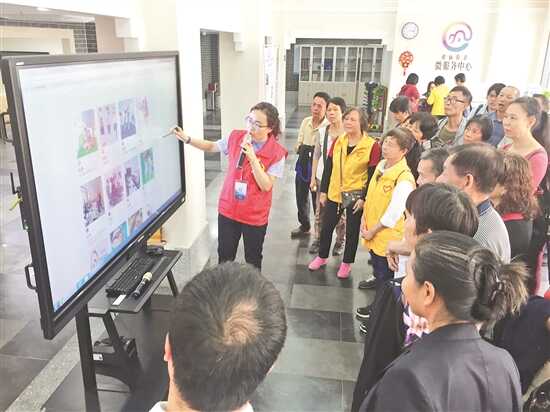 佛山市禅城区祖庙街道微服务中心工作人员向社区居民介绍线上服务平台 通讯员供图