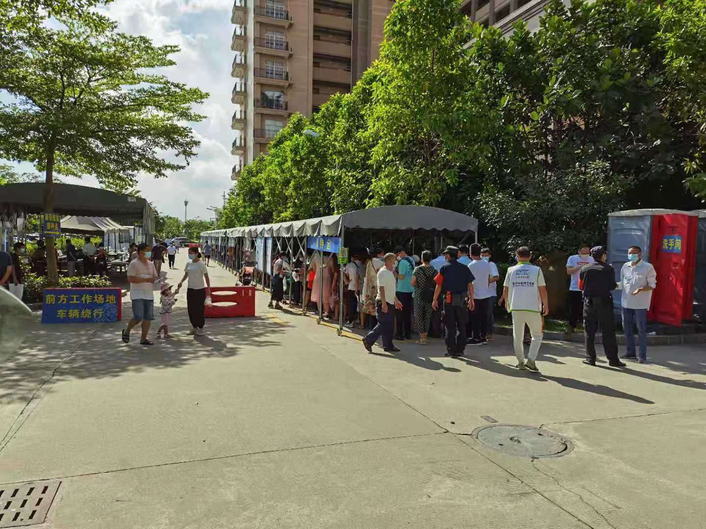 而番禺区二院立刻增派安保人员在户外等候区维持秩序。“我们的安保人员连着3、4个小时,一直在太阳下暴晒,全身湿透了,像从水里捞出来一样。”区二院有关负责人说。