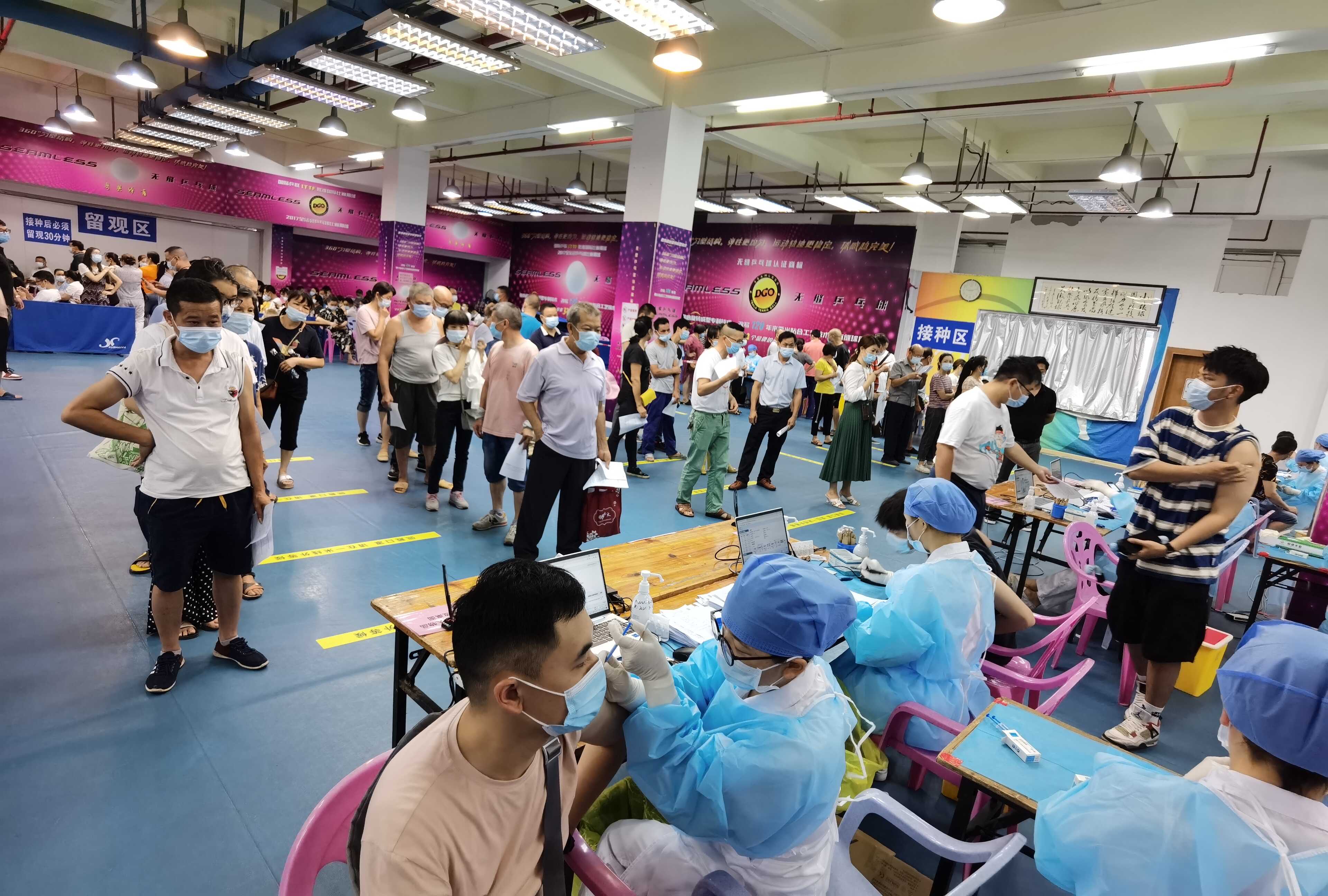 5月23日,广州天气炎热,但更“火热”的是群众接种新冠疫苗的热情。广州市番禺区各疫苗接种点马力全开,调动一切可以调动的人力,满足群众疫苗接种的需求。