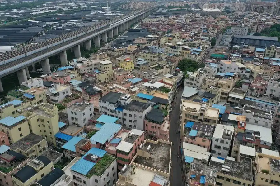 2021年6月2日,航拍实行封闭管控的广州荔湾区白鹤洞街海南村。(南方周末记者 翁洹/图)