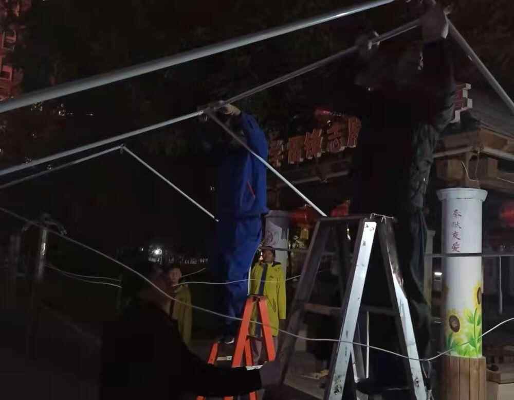 阅海万家C区物业部门工作人员连夜搭建防疫帐篷。受访者供图