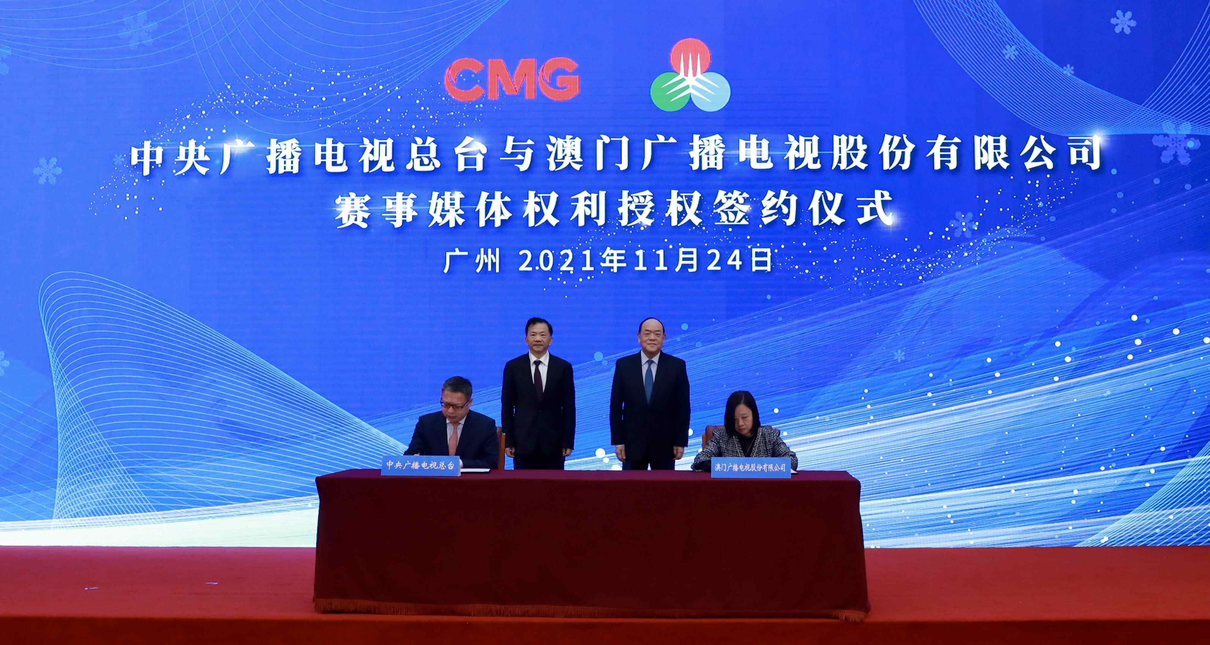 11月24日,中央广播电视总台与澳门广播电视股份有限公司在广州签署新一轮《赛事媒体权利授权书》。总台授权澳广视在北京冬奥会期间转播CCTV-16奥林匹克频道讯号,并授权其播出成都世界大学生夏季运动会赛事。这是总台全面落实文化惠澳政策,持续深化与澳门特区政府战略协作的一项具体举措。