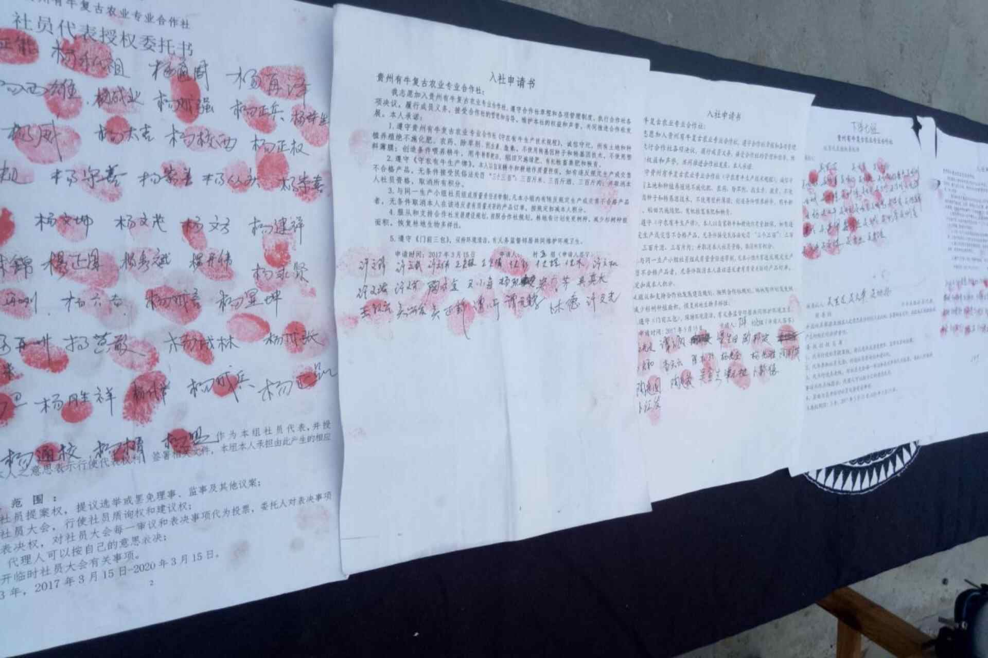这些年,“有牛哥”就在各村的“聚堂”介绍他的原生态牛耕种植。“牛耕部落的杨书记来了”,每去一地,村民们就会互相通知,感兴趣的人都可以来听。决定加入后,乡亲们就在这里按下红手印,签署以“侗款”形式制定的有机种植协议——《守农有牛生产律》,订下最朴实的约定。