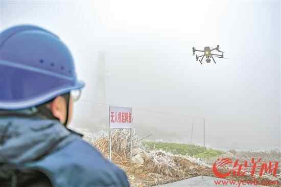 27日清晨,韶关市大桥镇,南方电网广东韶关供电局输电管理所的工作人员通过无人机自主巡航,对线路覆冰情况进行观测。这是今年下半年的首次防冰特巡工作 羊城晚报全媒体记者 梁喻 实习生 刘盈 摄