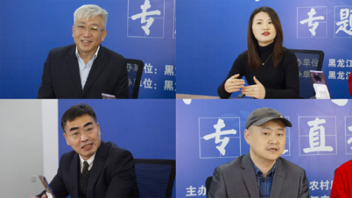 直播间企业嘉宾:五常市乔府大院农业股份有限公司副总裁鲍佳(左上)黑龙江省五常金禾米业有限责任公司营销公司总经理王岩峰(右上)黑龙江东禾农业集团有限公司副总经理孙常艳(左下)北大荒食品集团有限公司市场部副总经理刘雨琪(右下)