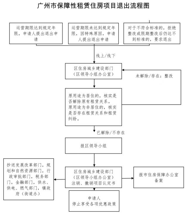 对于不符合标准的,拒绝整改或限期整改后仍达不到标准及运营期限未达到规定年限,因破产清算、征收拆迁等其他原因确需退出的保障性租赁住房,主管部门可撤销其保障性租赁住房项目认定书。