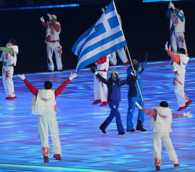 希腊运动员玛丽亚·恩塔努参加北京冬奥会闭幕式