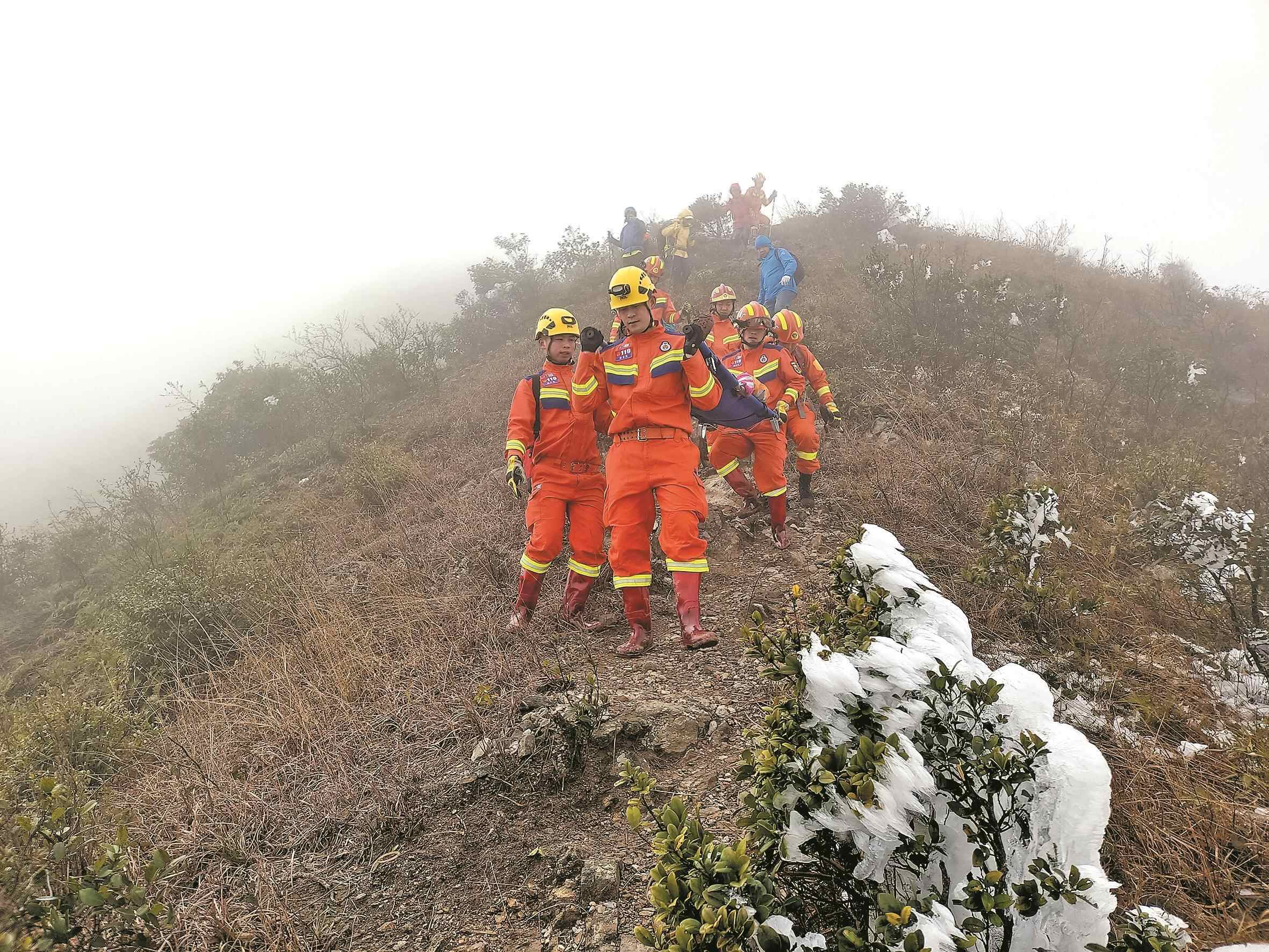 羊城晚报讯 记者付怡,通讯员邓思婷、粤消宣摄影报道:“驴友”登山要注意安全!2月23日上午11时许,清远市消防救援支队接到警情,英德市东华镇雪山嶂山顶有6人被困,情况紧急。接警后,当地消防救援站立即出动1辆消防车赶赴现场,东华专职消防队同时前往现场救援。