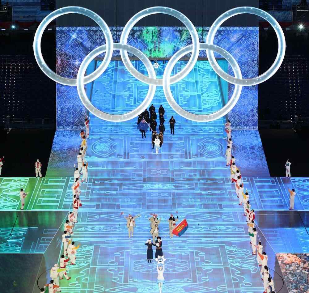2月4日,蒙古国代表团在第二十四届冬季奥林匹克运动会开幕式上入场。新华社记者杨磊摄