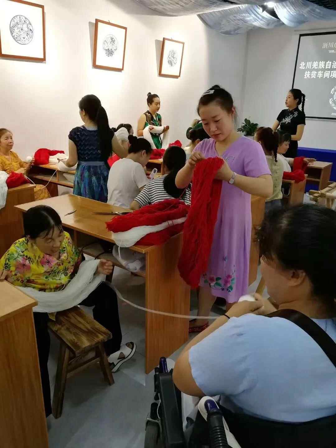去年,吴争仙往返北川11次,每个月都会在当地停留一周,给当地妇女做培训、安排生产。今年圣诞季卖到海外的几万顶帽子中,有一半就来自北川的扶贫工厂。