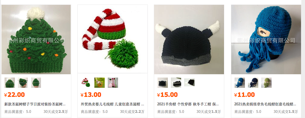 吴争仙的客户,基本上是在速卖通做海外市场的卖家。他们从1688找到吴争仙,又通过速卖通将她的产品,发往全球。今年双十一期间,速卖通平台毛线销量猛增,当周销售额增幅达1347.6%;从今年9月至今,吴争仙在1688上的店铺,已经卖出几万顶毛线帽。