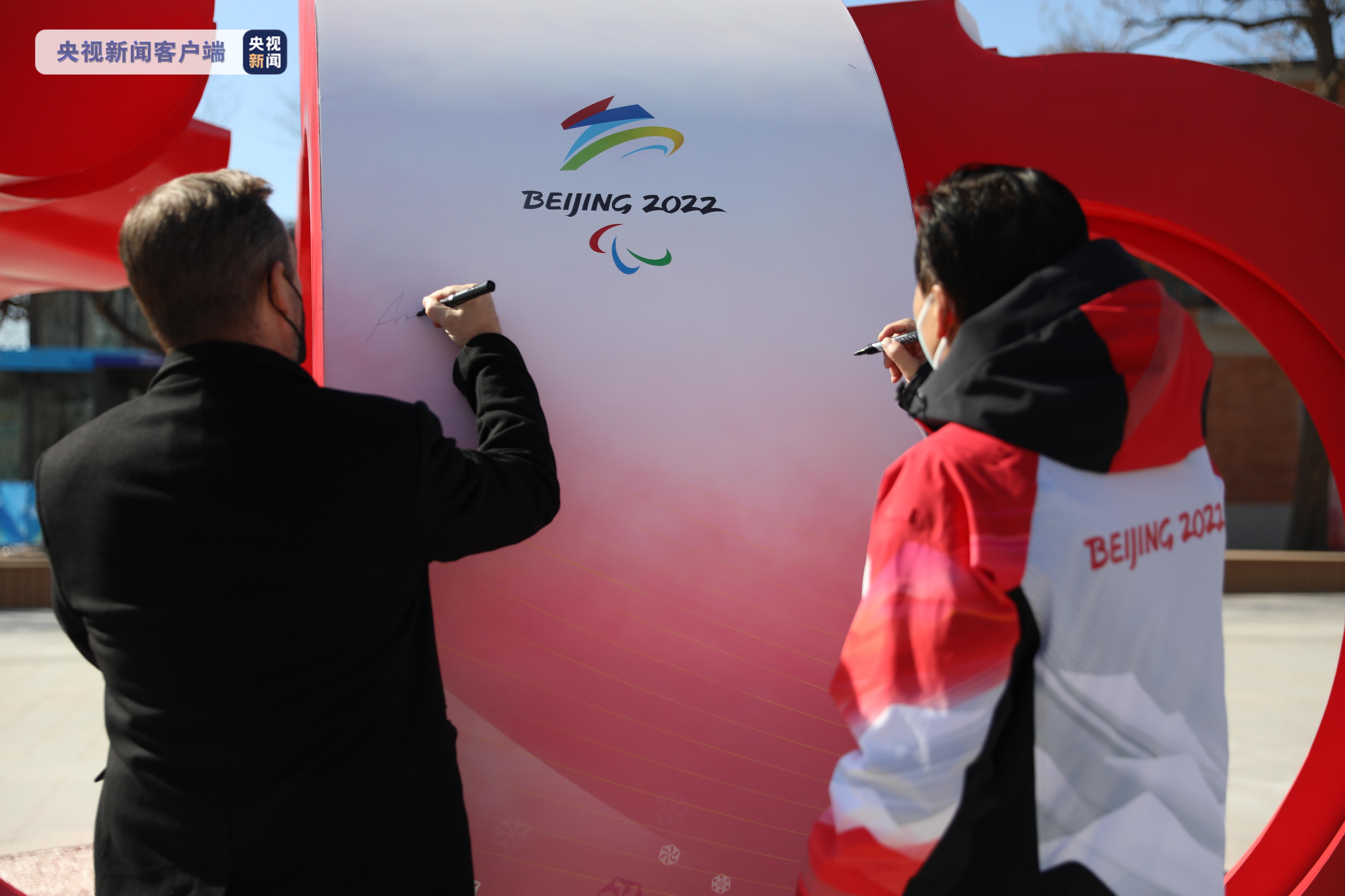 赛时,将组织冬残奥村内运动员和随队官员在残奥壁画金属板表面签名。