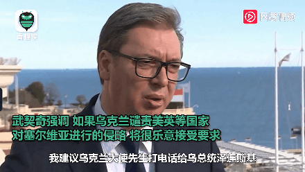 ▲2022年2月22日,针对乌克兰驻塞尔维亚大使要求其就乌克兰问题谴责俄罗斯,塞尔维亚总统武契奇表示,“建议他打电话给乌总统泽连斯基,要求他谴责美国、英国和其他国家对塞尔维亚进行的侵略行径”。