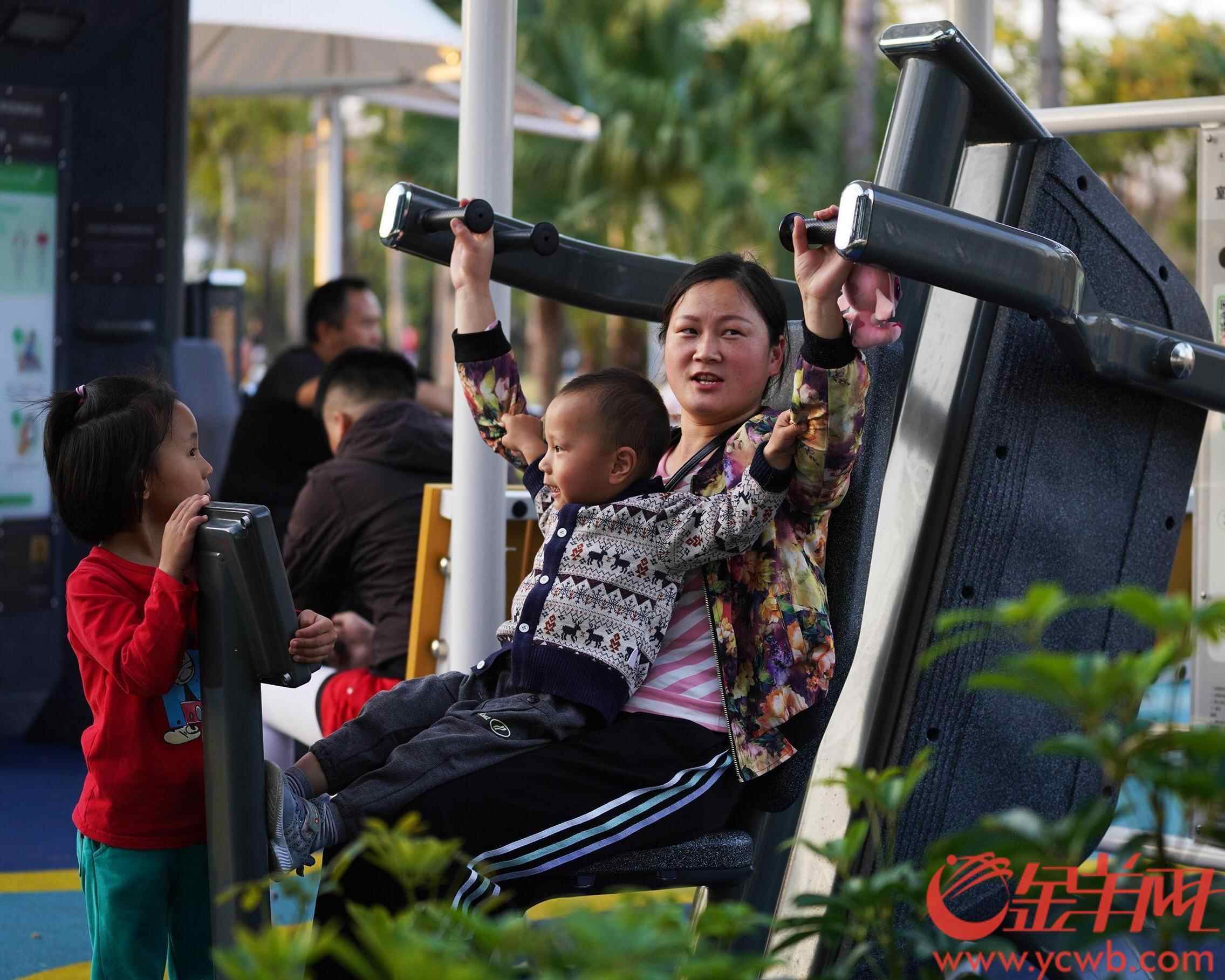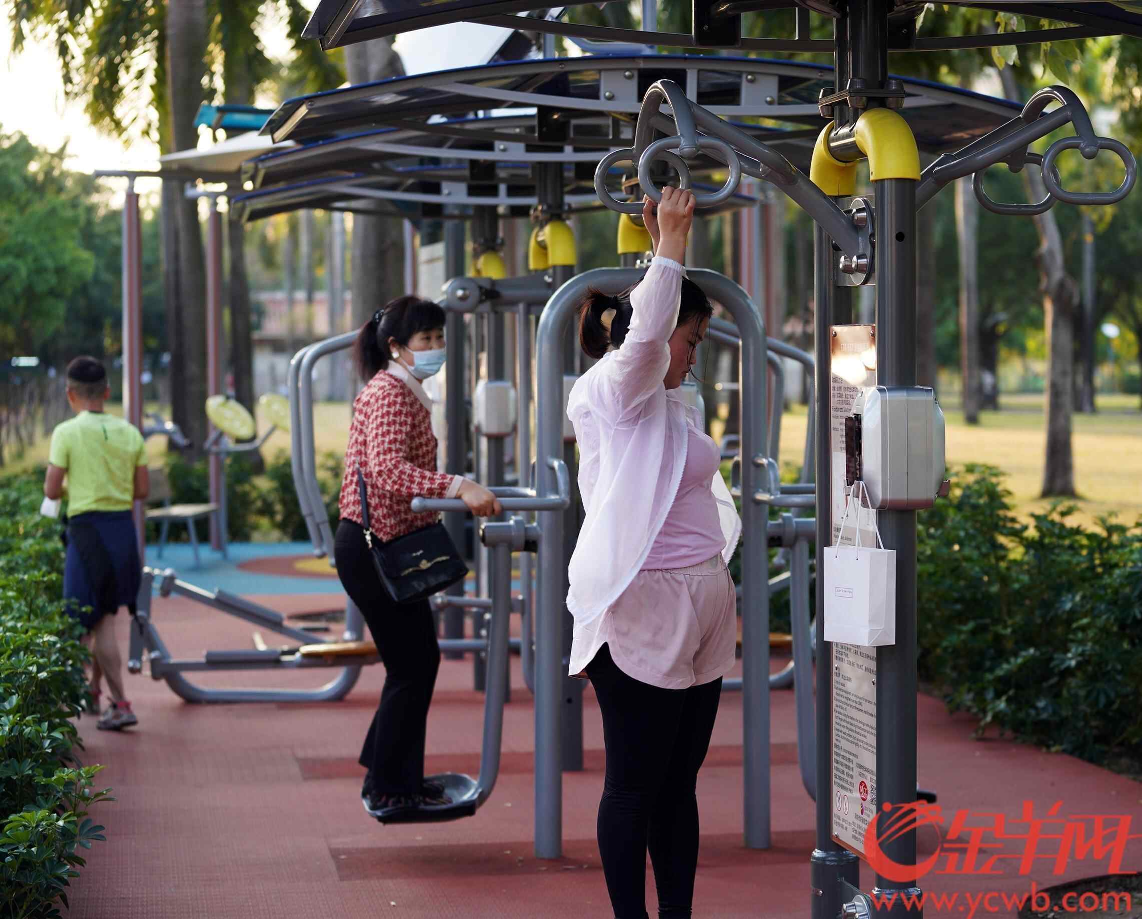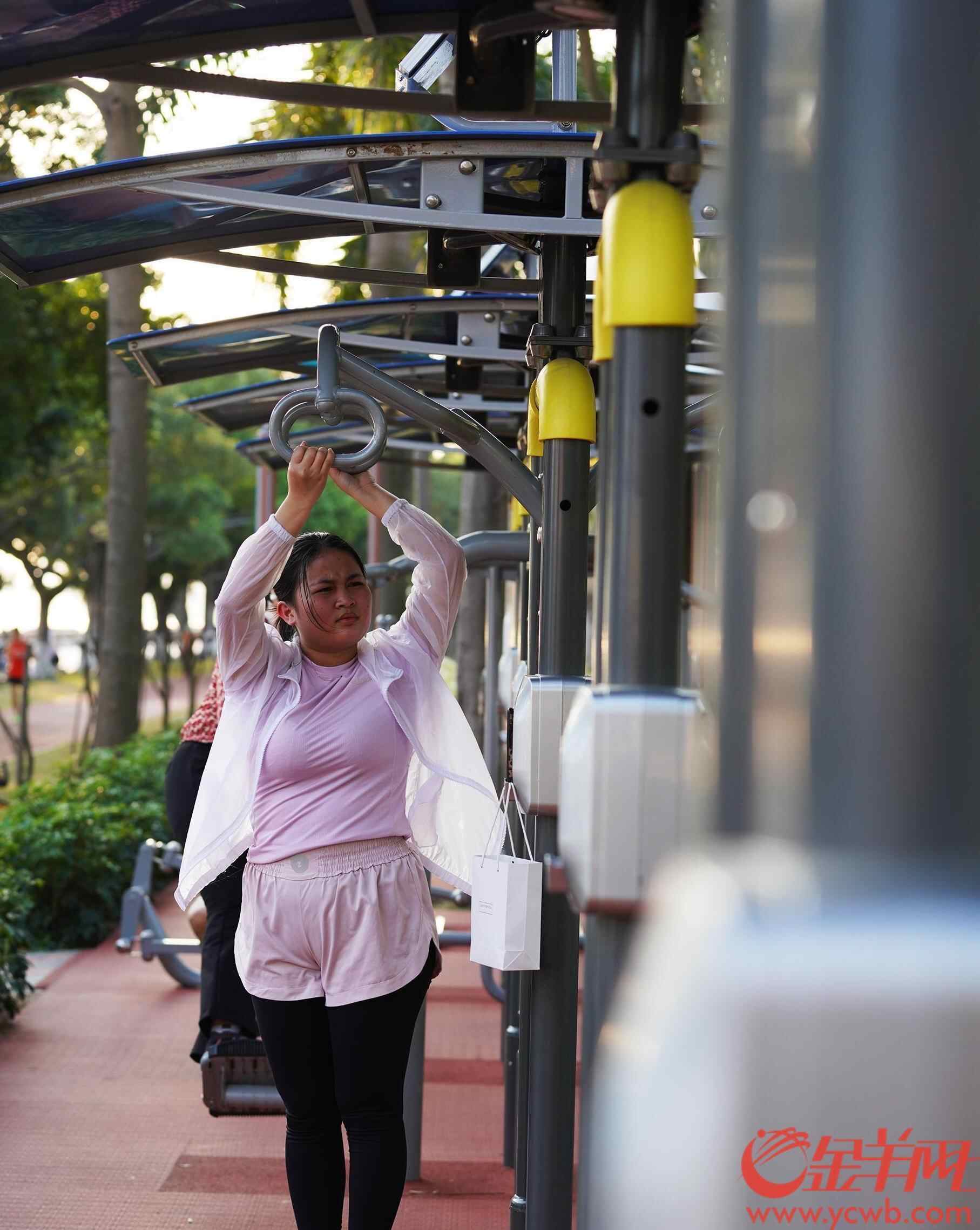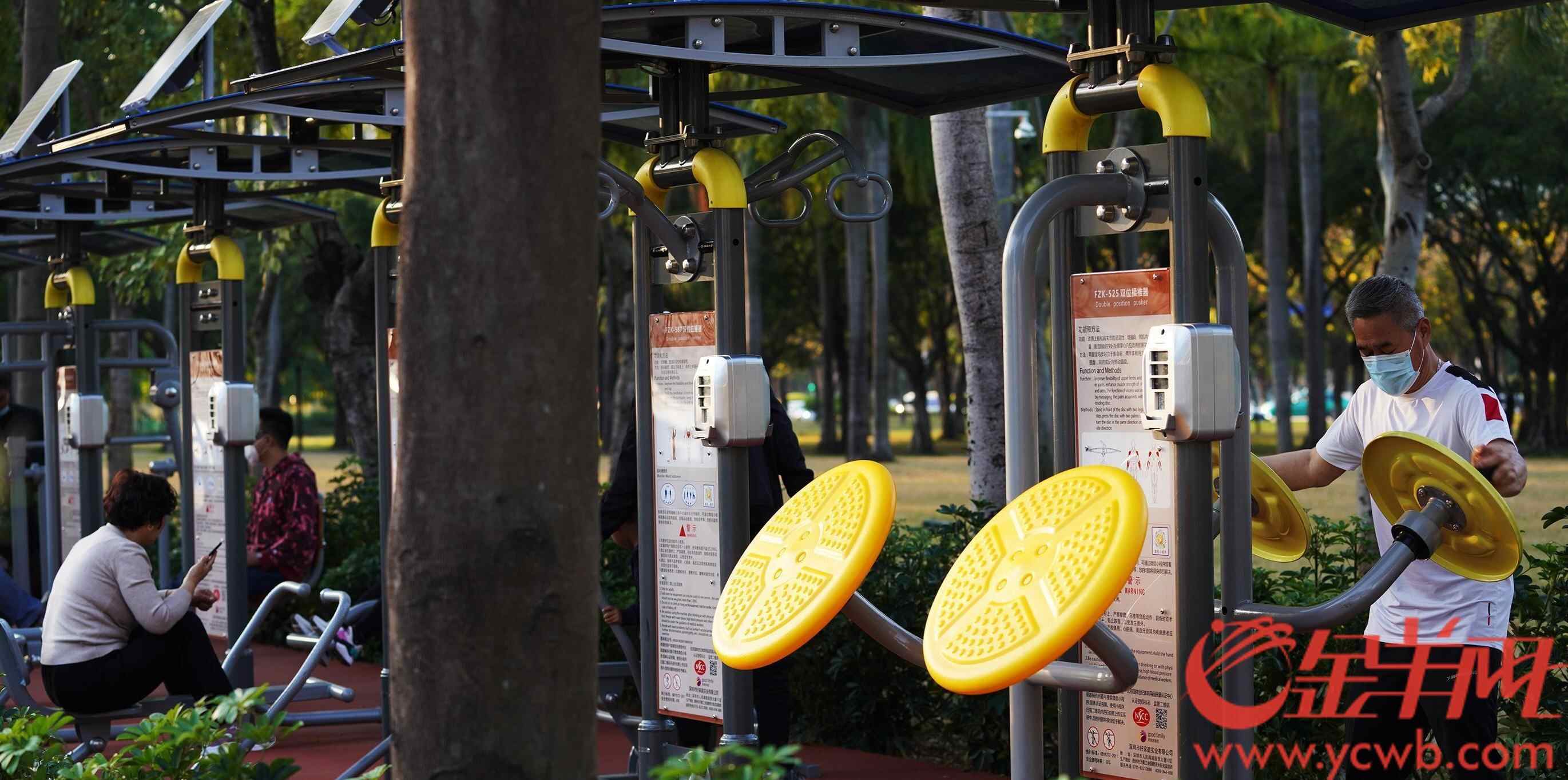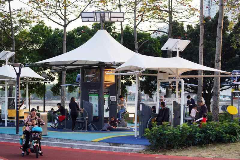 临近傍晚,珠江边微风轻拂,阳光和煦。年过七旬的梁婆婆正在使用智能公共体育设施,做推背运动,“质量好,用起来感觉不错。”她住在员村,经常带着孙女,约上邻居好友,来江边锻炼身体、休闲放松。梁婆婆告诉记者,以前没有体育设施的时候,只能散散步,现在能够做简单的运动,很适合老人家。