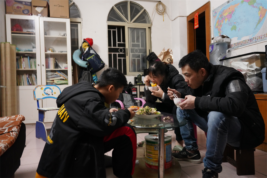 李润兰的孩子一直在广州读小学。之前母子一直是异地,由丈夫一个人带着。如今母子团聚,日常跑单休息间隙,她还能回家吃个饭。小孩上六年级后,学会了自己做饭吃,她回家还能吃到孩子做的饭。李润兰说,这是她每天最幸福的时刻。