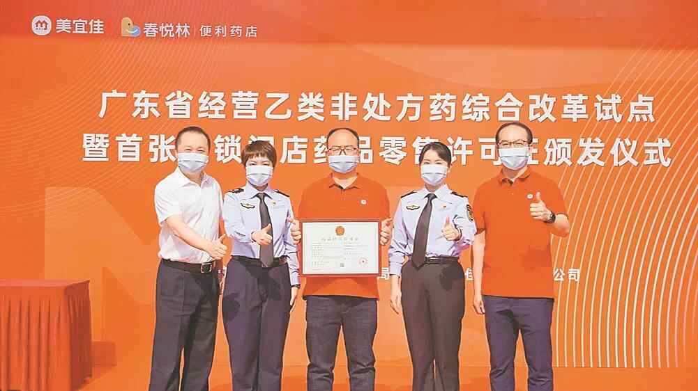 3月15日起,《广东省经营乙类非处方药综合改革试点工作实施方案》正式实施,市民以后可以在试点的便利店,享受24小时购药便利,可购买到夏桑菊颗粒等常用乙类非处方药。同日,广州、东莞在全省率先发出首批试点单位在大型连锁便利店经营乙类非处方药的《药品经营许可证》,广东经营乙类非处方药跨界融合综合改革试点工作全面启动和落地实施。