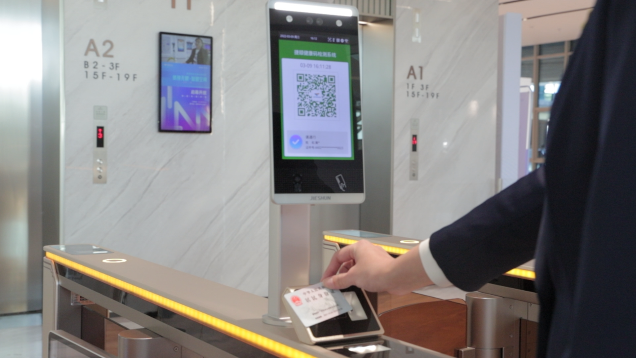 在深圳购物公园,往来出入的人员,只需要在设备上扫描健康码、核验人脸(无需摘下口罩)或刷一下身份证,就能快速识别通行人员的实时体温、健康码状态、核酸检测结果和新冠疫苗接种情况等信息,全过程数据上报,实现便捷检疫,快速通行。