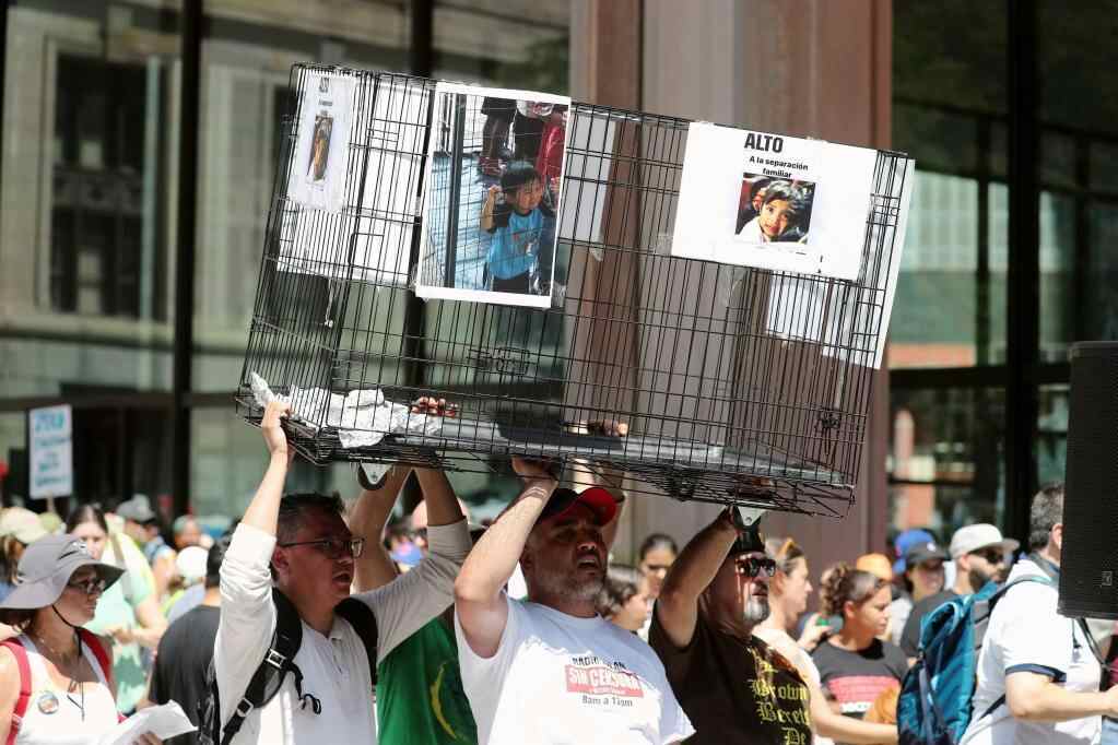 图为2018年6月30日,人们在芝加哥参加反对移民执法政策集会。美国政府4月推出“零容忍”的强硬移民执法政策,规定所有成年非法入境者被捕后将一律面临拘押和起诉,他们的子女则被安置在其他地点,造成“骨肉分离”。6月底,美国多座城市举行700多场集会,要求边境执法人员结束“骨肉分离”式执法,使分离的家庭尽快团聚。新华社记者汪平摄
