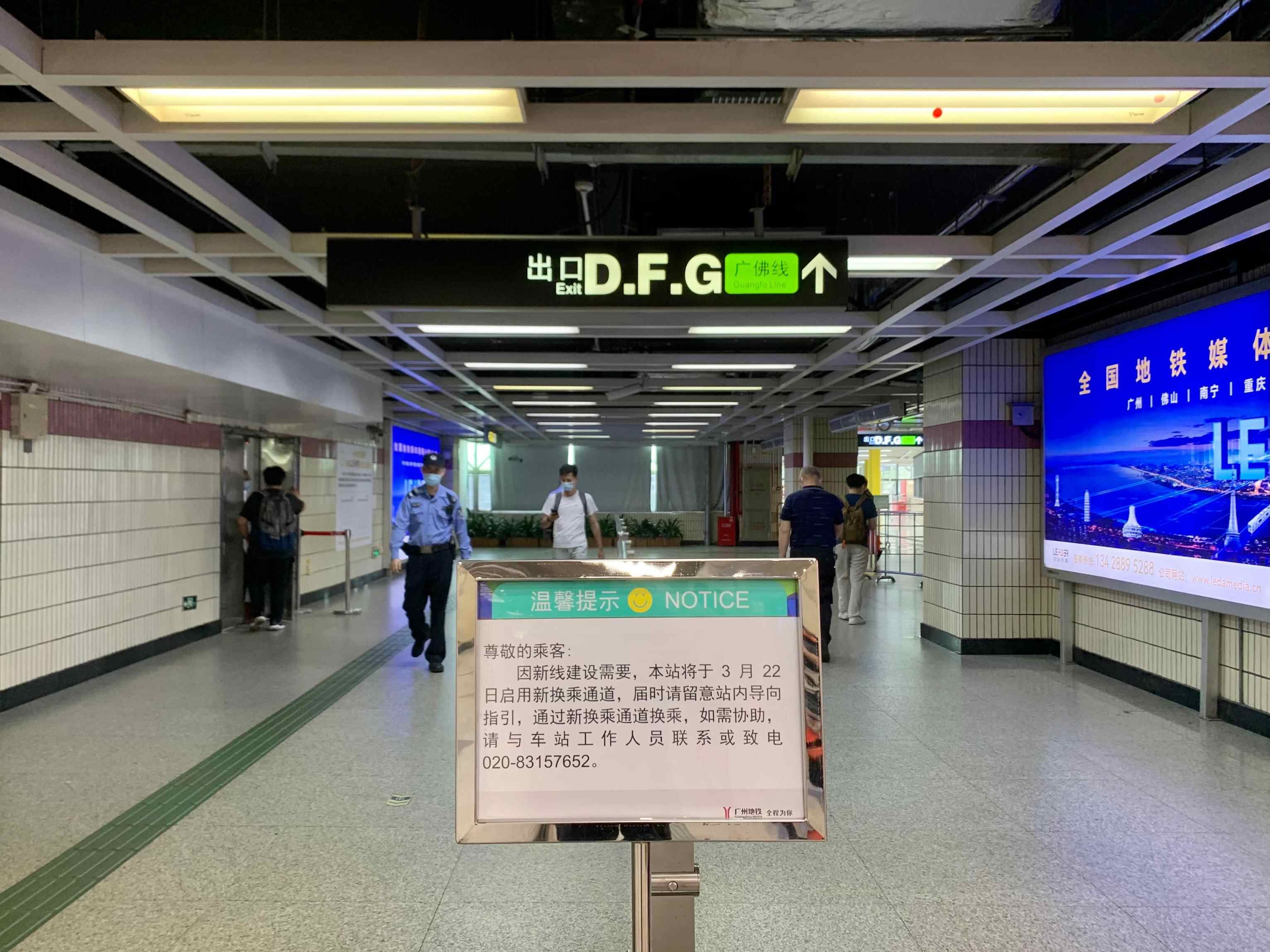 因让位于广州地铁10号线的建设工程,1号线与广佛线的旧换乘通道将会被拆除。