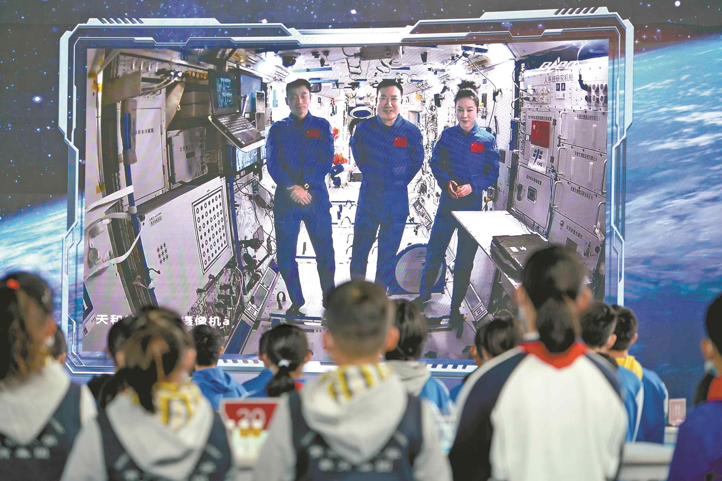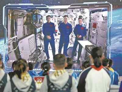 据新华社电 “天宫课堂”第二课23日开讲,“太空教师”翟志刚、王亚平、叶光富在中国空间站再次为广大青少年带来一堂精彩的太空科普课。