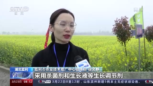 监利市农业技术推广中心技术员 徐文静:采用杀菌剂和生长液等生长调节剂,以达到促进油菜正常生长,防菌核病、防早衰、防花不实和防高温逼熟的一个效果,以保证油菜的丰产。