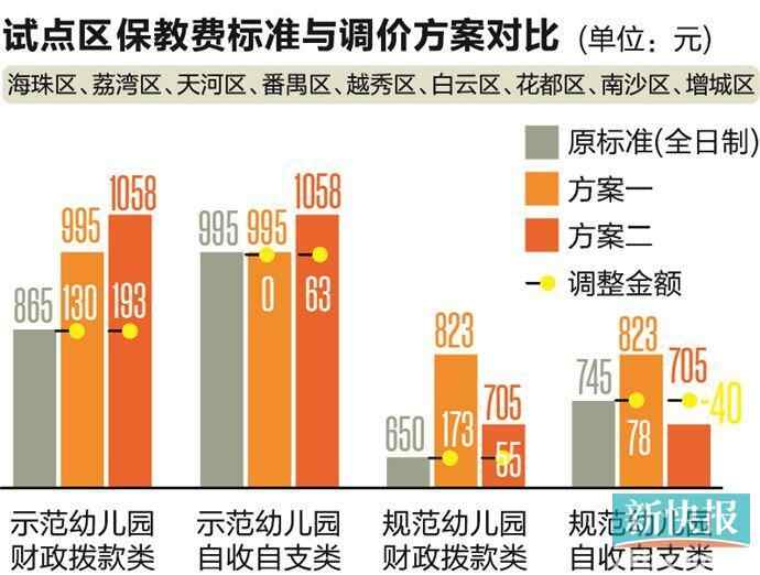 对于在试点区公办幼儿园的家长来说,方案一,预计自收自支类示范幼儿园新生支出标准不变,其余各类公办幼儿园新生每月增加支出78元-173元;方案二,预计自收自支类规范幼儿园新生支出每月减少40元,其余各类公办幼儿园新生每月增加支出55元-193元。