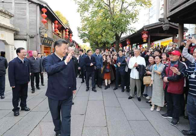 2021年3月22日至25日,中共中央总书记、国家主席、中央军委主席习近平在福建考察。这是3月24日下午,习近平在福州三坊七巷历史文化街区考察时,向游客和市民招手致意。新华社记者 鞠鹏 摄