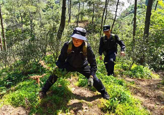 翻山越岭、过河趟溪,正值农忙,杨世荣和队员们需要确认生态保护区各个点位上的茶园“是否有人复种,是否有人扩种”,如果发现违法的情况,得就地执法并记录。