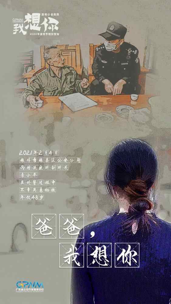 2022年清明节,广东省公安厅新媒体中心推出《我和你》系列视频策划。视频《爸爸,我想你》,便讲述了广东因公牺牲民警李小平的故事。