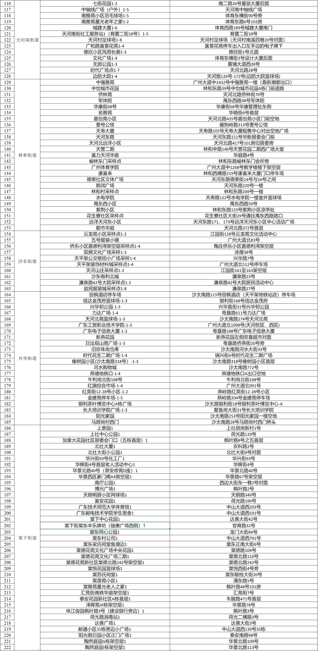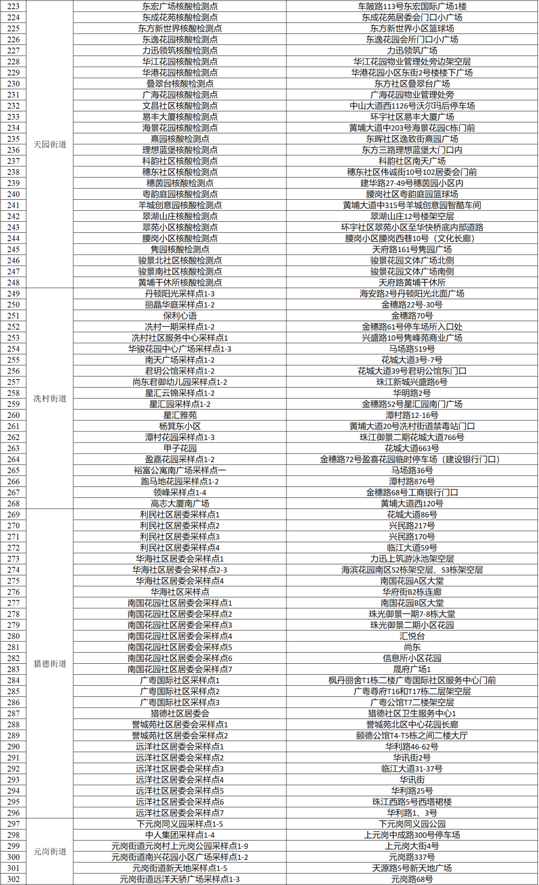 1. 天河区全员核酸检测点一览表(后续全员核酸检测点将根据实际情况进行调整)