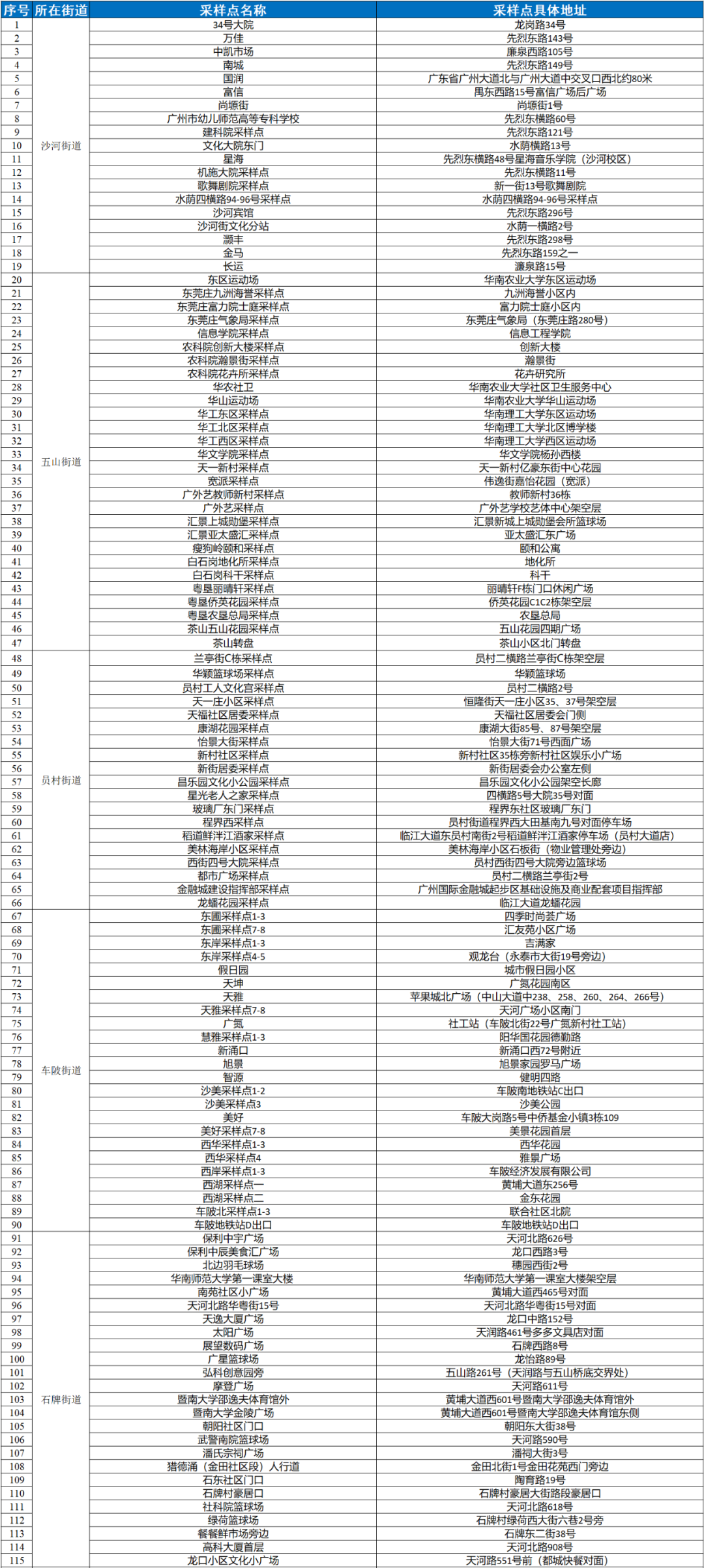 广州市天河区开展全区全员核酸检测!全区测点公布!