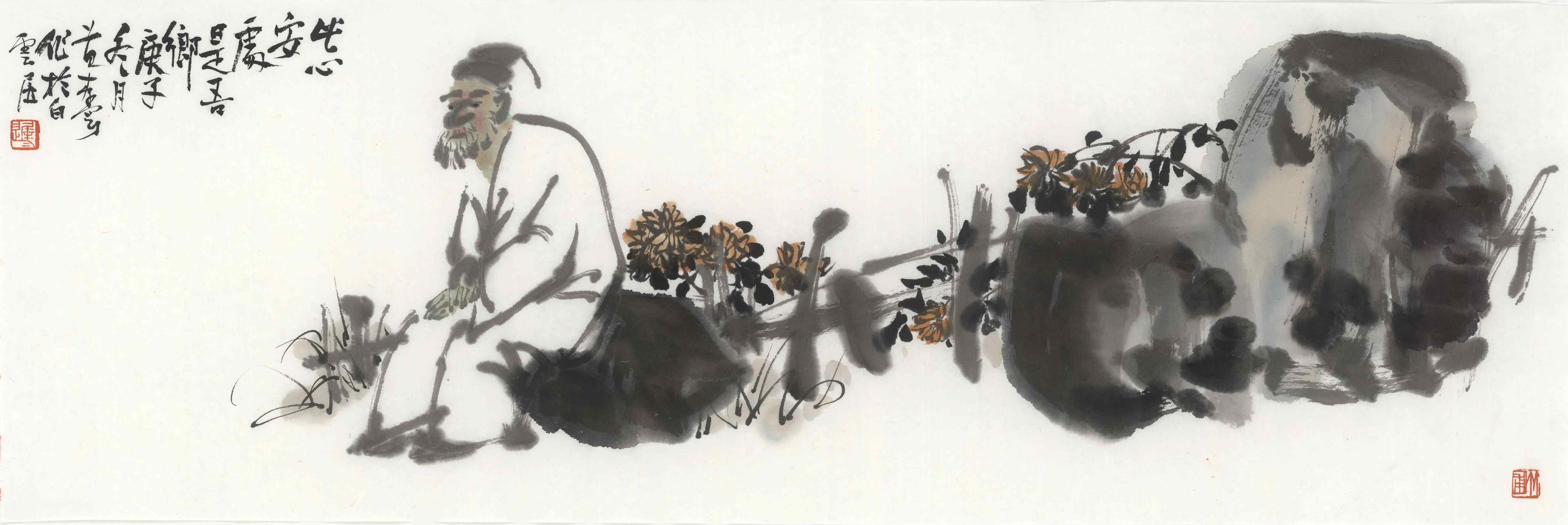 文人画传统讲究诗情画意,提倡诗、书、画的全面修养,而把诗放在第一位,一定有其原因和合理性。苏轼在《书鄢陵王主簿所画折枝》中主张“诗画本一律,天工与清新”,并推崇王维“画中有诗”、情景交融的境界,这是文人画审美取向的标准,一直对后世水墨画影响极深。宗白华先生说,诗意的境界要“绚烂之极归于平淡”,即不是停留在技艺的层面,而要上升到表现思想情感的境界。“画中有诗,诗中有画”,一方面是指画作的含蕴深刻,意象悠远,令人遐思,把诗文直接书写在画幅上,寄情于画,点醒作品的主题、意境,记录作者的感受,画中不单单是物象的客观再现,而是画家主观感情的挥写。另一方面,画上题诗,以书入画,阐述画意,抒发情感,画龙点睛,使诗情增添画意,珠联璧合,相得益彰,进一步加强了绘画用笔用线的表现力,正所谓笔精墨妙之极。书法式的用笔为画家重视,只有在高度重视笔墨技法的同时,更加重视诗的意境、诗画一律、以诗入画,才能从根本上延续中国传统文化精神的文脉。现代中国画大师吴昌硕、齐白石、黄宾虹、陆俨少等人无不饱读诗书,诗画兼工,在绘画中注重诗的意境的营造。