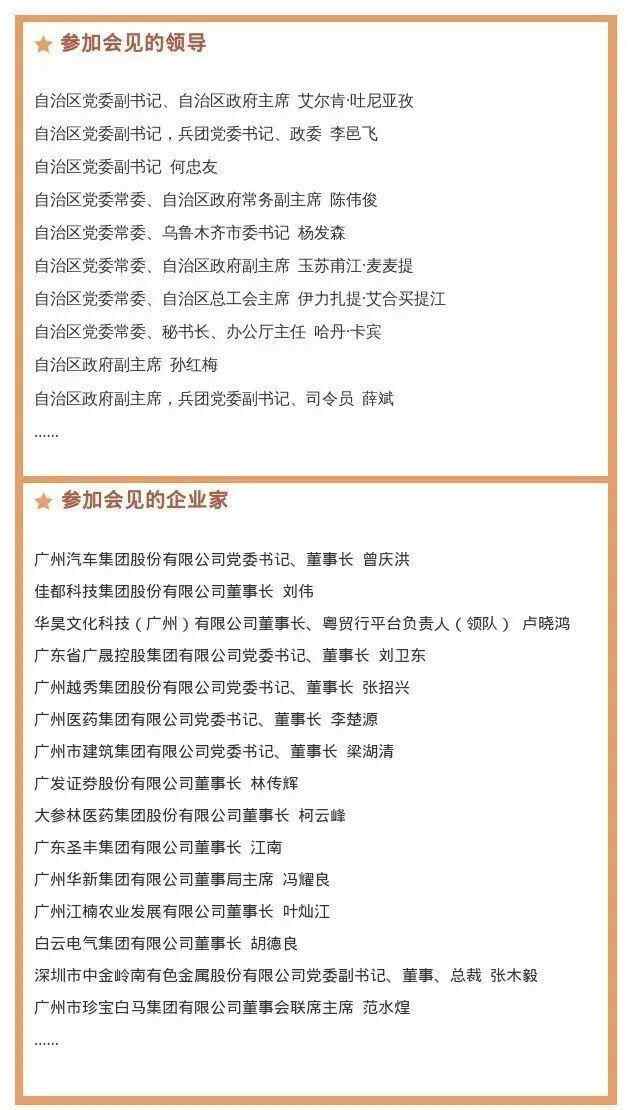 4月13日,“丝绸路·粤贸行——来到新疆这个好地方”广东省部分重点企业考察团受到新疆维吾尔自治区党委书记马兴瑞、新疆维吾尔自治区主席艾尔肯·吐尼亚孜的接见,就粤港澳大湾区与新疆维吾尔自治区两地产业对接相关事项展开座谈交流。