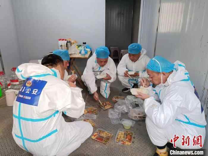 封控区里工作时间长,又要穿着密不透风的防护服,很多事情都不方便。“工作时尽量少喝水,上厕所不方便,尽量克服困难。”民警吴亮亮说。