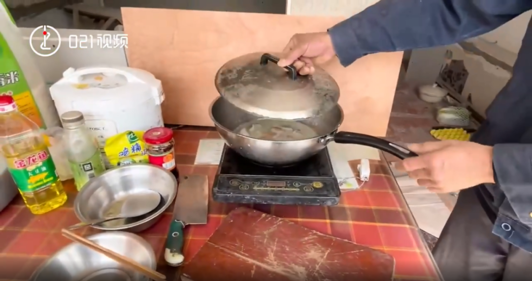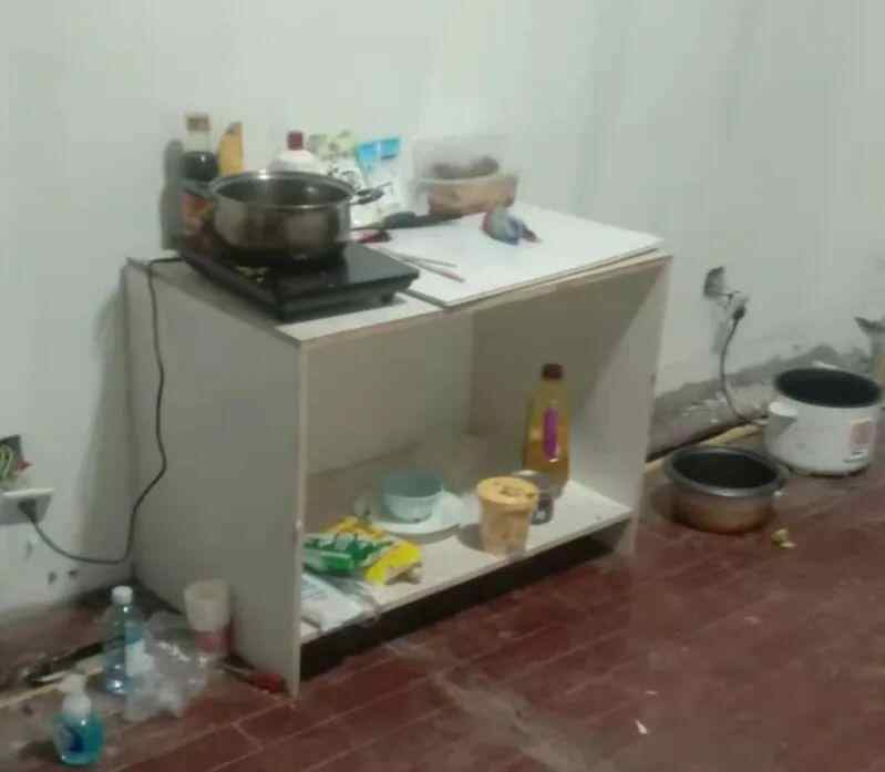 我们本来在外面也没租房子,干装修的人很多都是这样,这几天在这儿干活,过几天再换另一个地方。到哪儿干活,铺盖卷、电饭煲都随身带着。住的问题好解决,地上铺一层被子,身上再盖一层,打地铺睡,习惯了。就是吃的问题麻烦些。封控之前,我们提前准备了十几斤大米,十几个鸡蛋,几桶泡面,肉肯定不能买,工地上没冰箱,放不了几天就坏了。